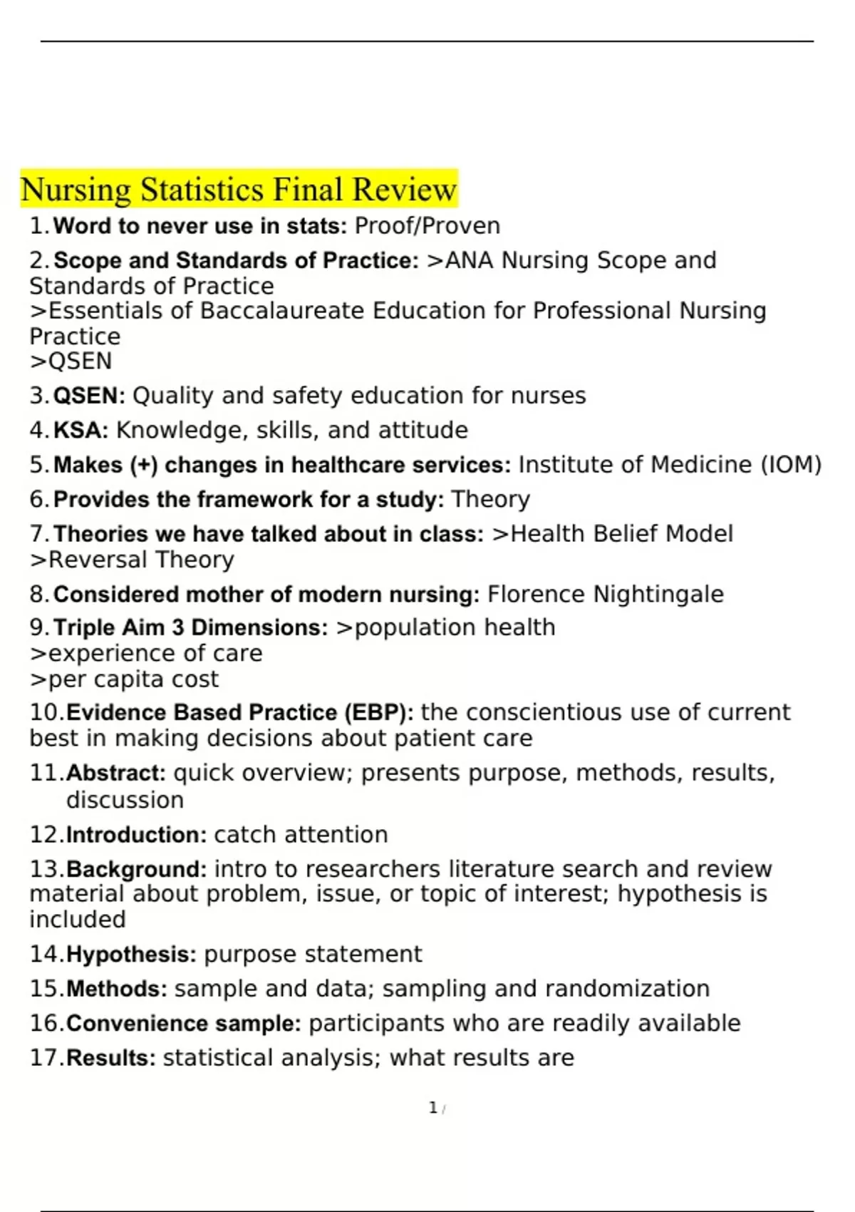 Nursing Statistics Final Exam Review 2022 with complete solution