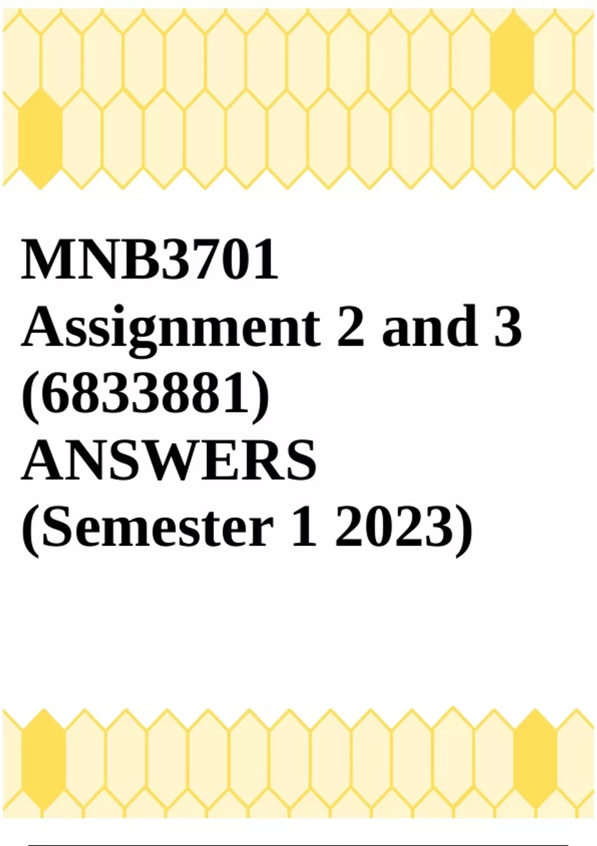 MNB3701 Assignment 2 and 3 (6833881) ANSWERS (Semester 1 2023)