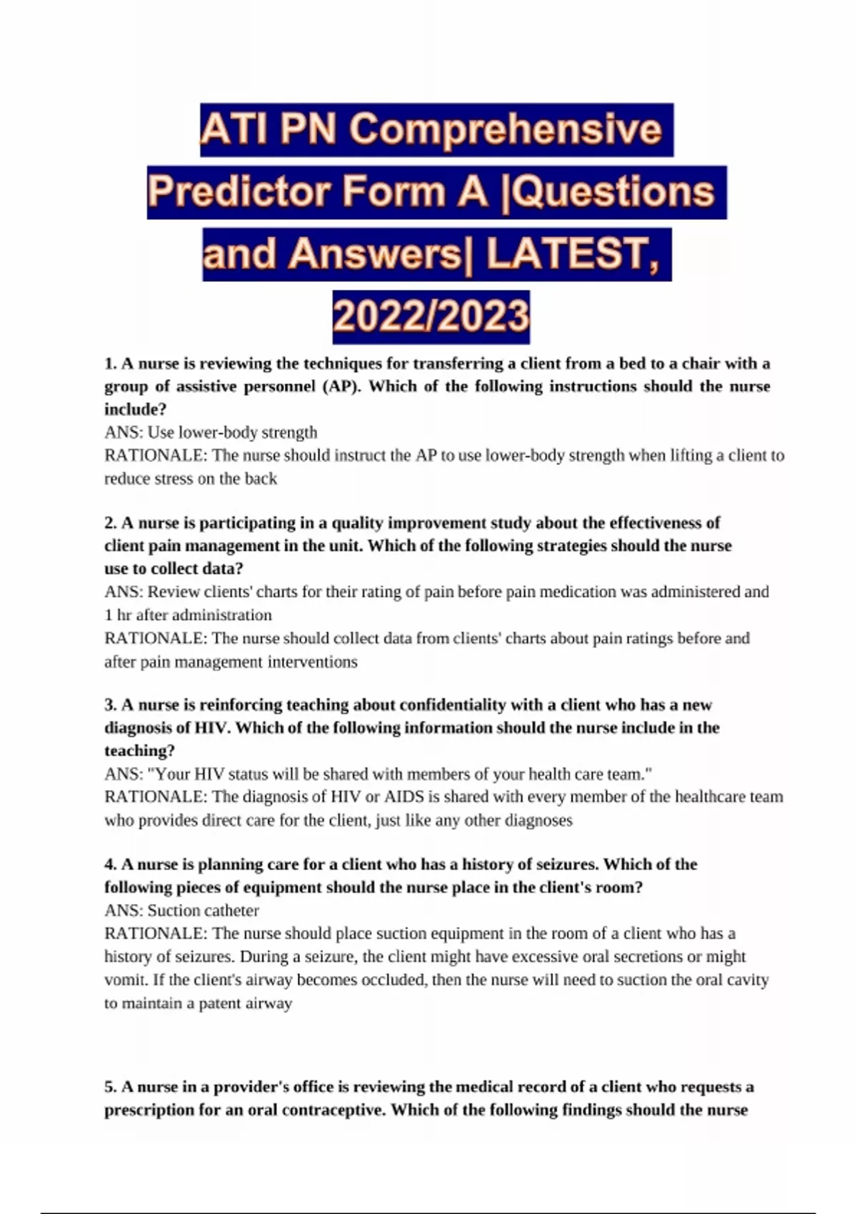 ATI PN Comprehensive Predictor Form A ,B,C |Questions and Answers 2023