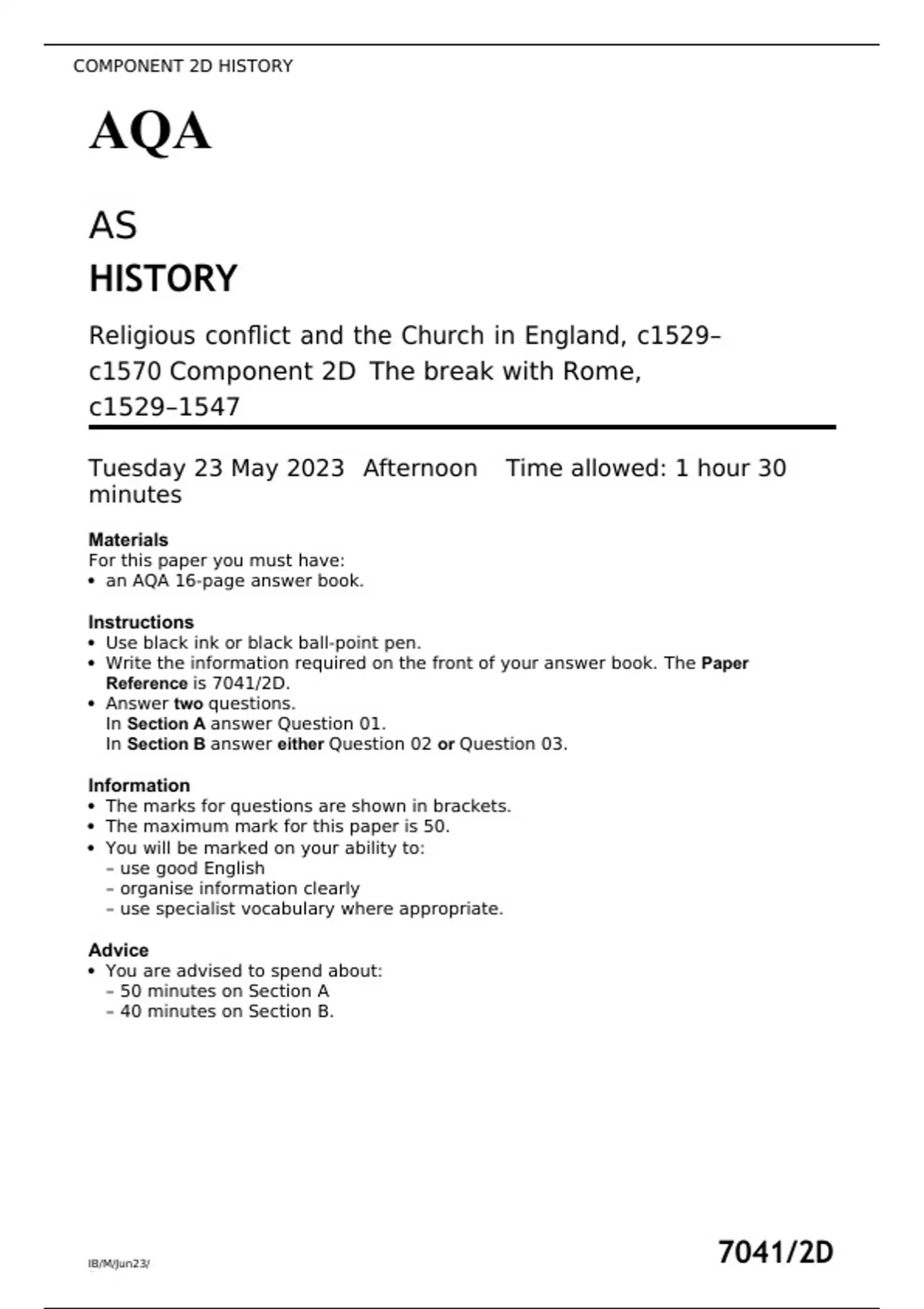 Tuesday 23 May 2023 Afternoon Time allowed: 1 hour 30