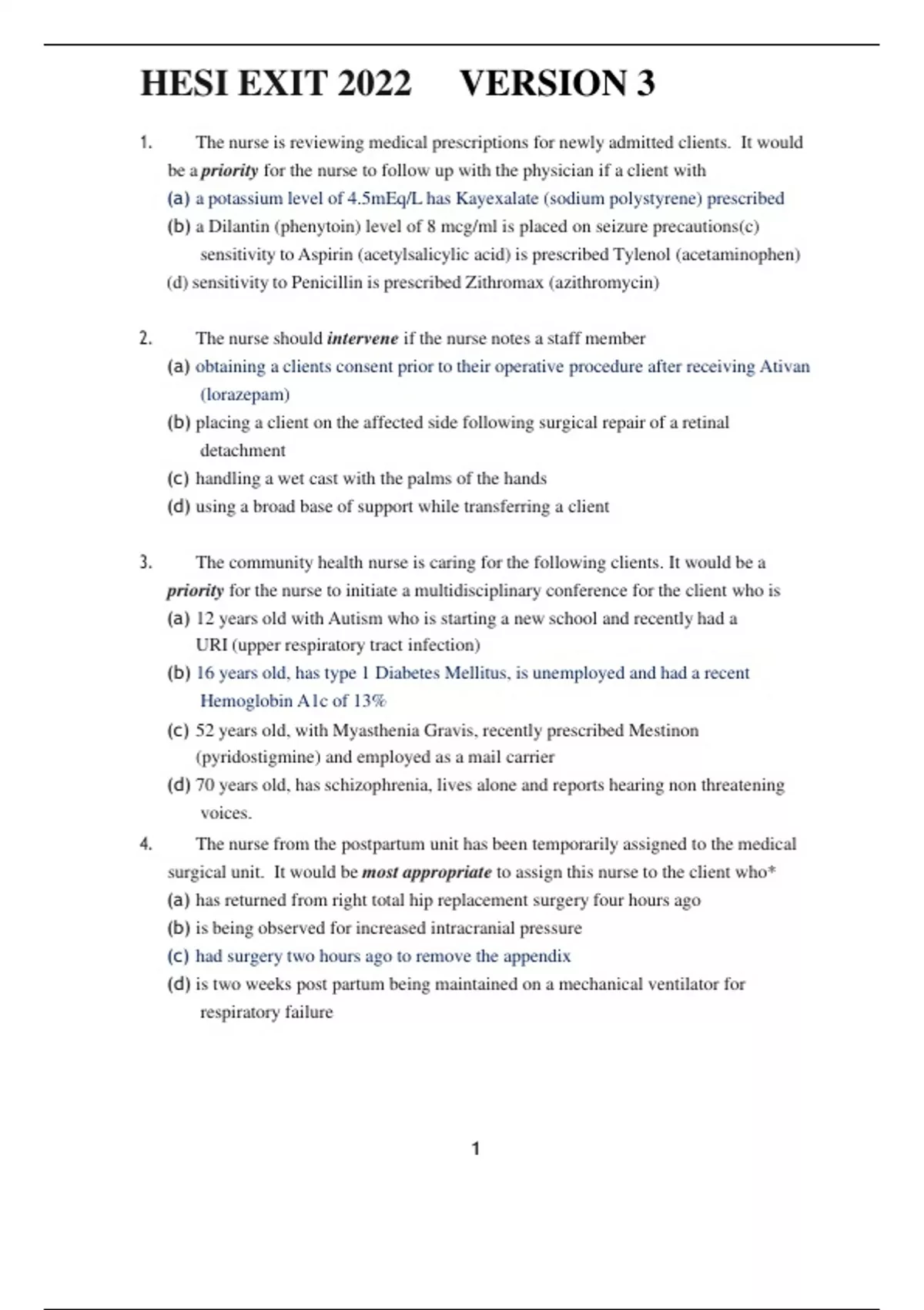 HESI EXIT 2022 VERSION 3 RATED A+