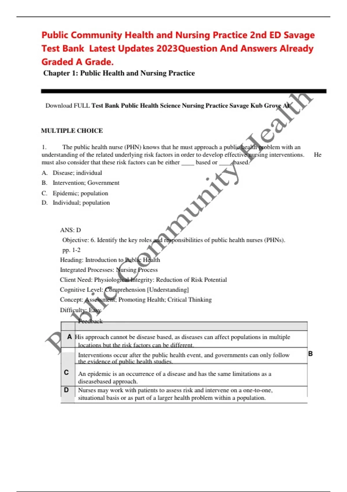 Public Community Health and Nursing Practice 2nd ED Savage Test Bank Latest Updates 2023Question And Answers Already Graded A Grade.