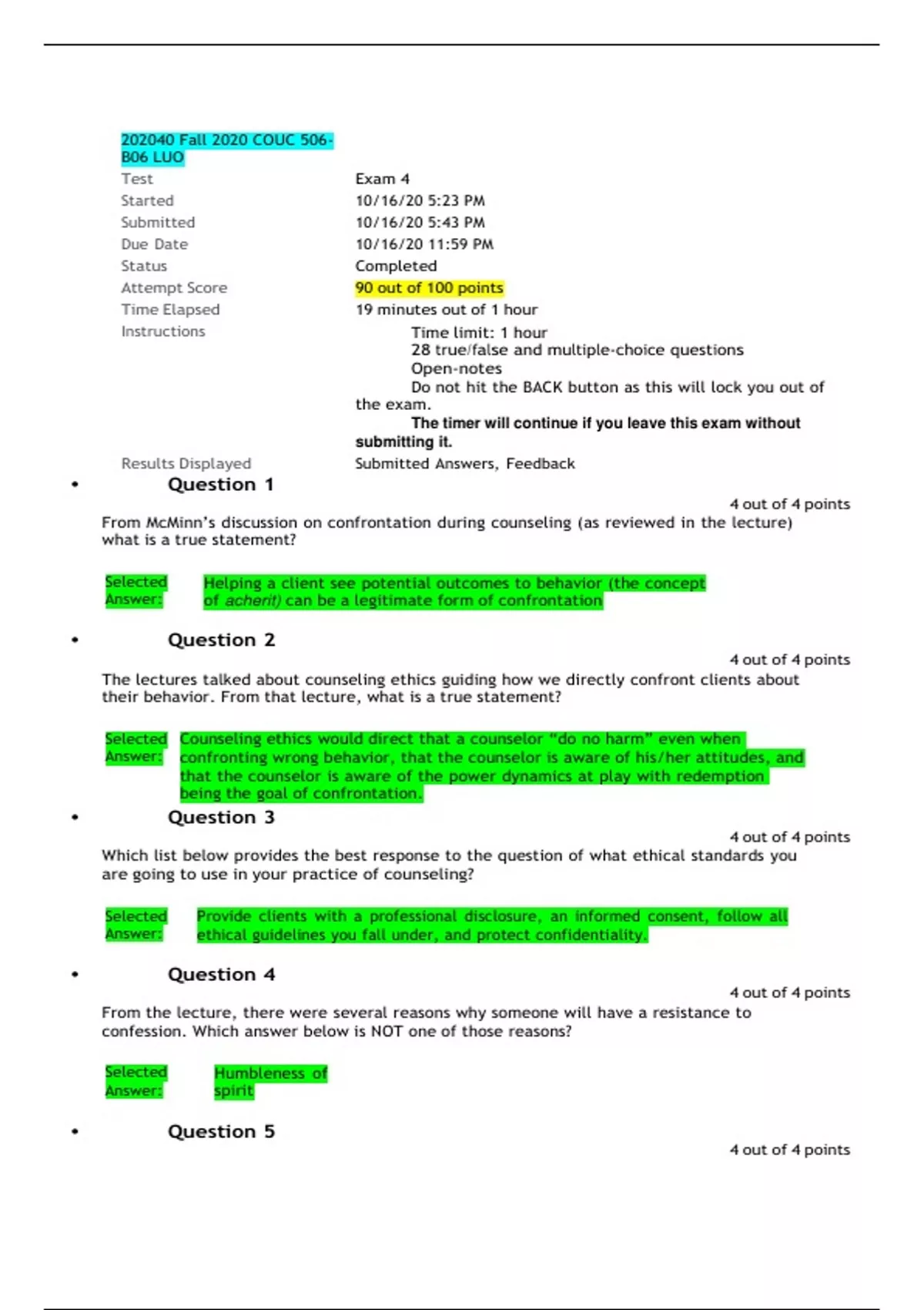 Fall 2023 COUC 506 Exams.
