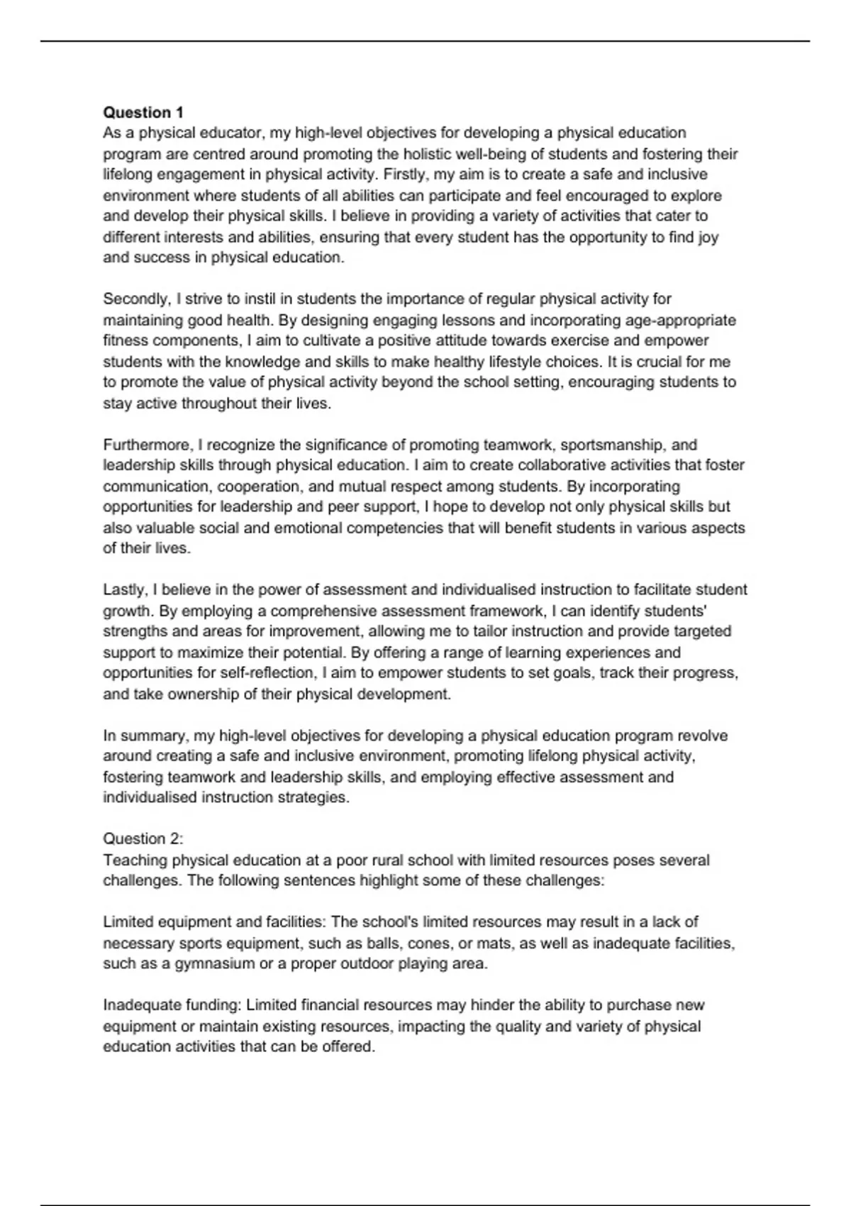 In summary, my high-level objectives for developing a physical education program revolve