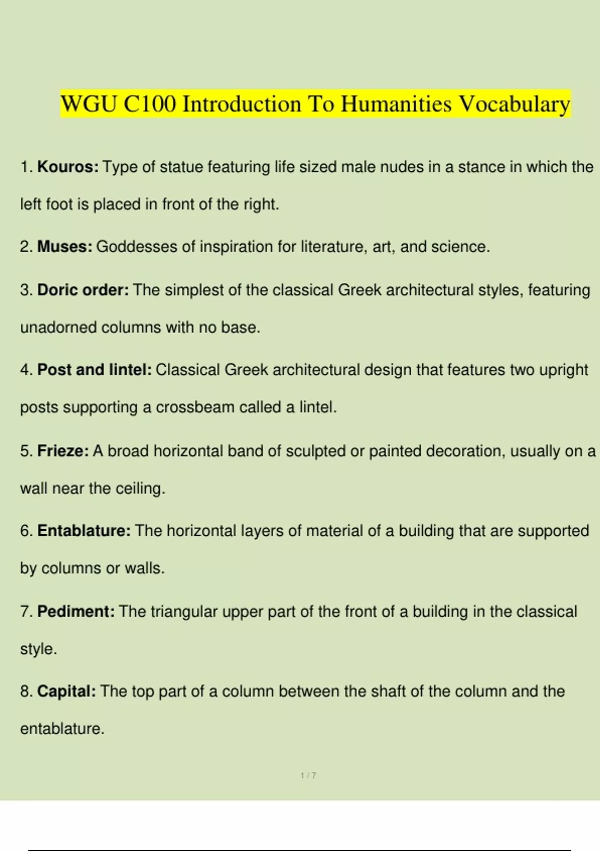WGU C100 Introduction To Humanities Vocabulary 2023