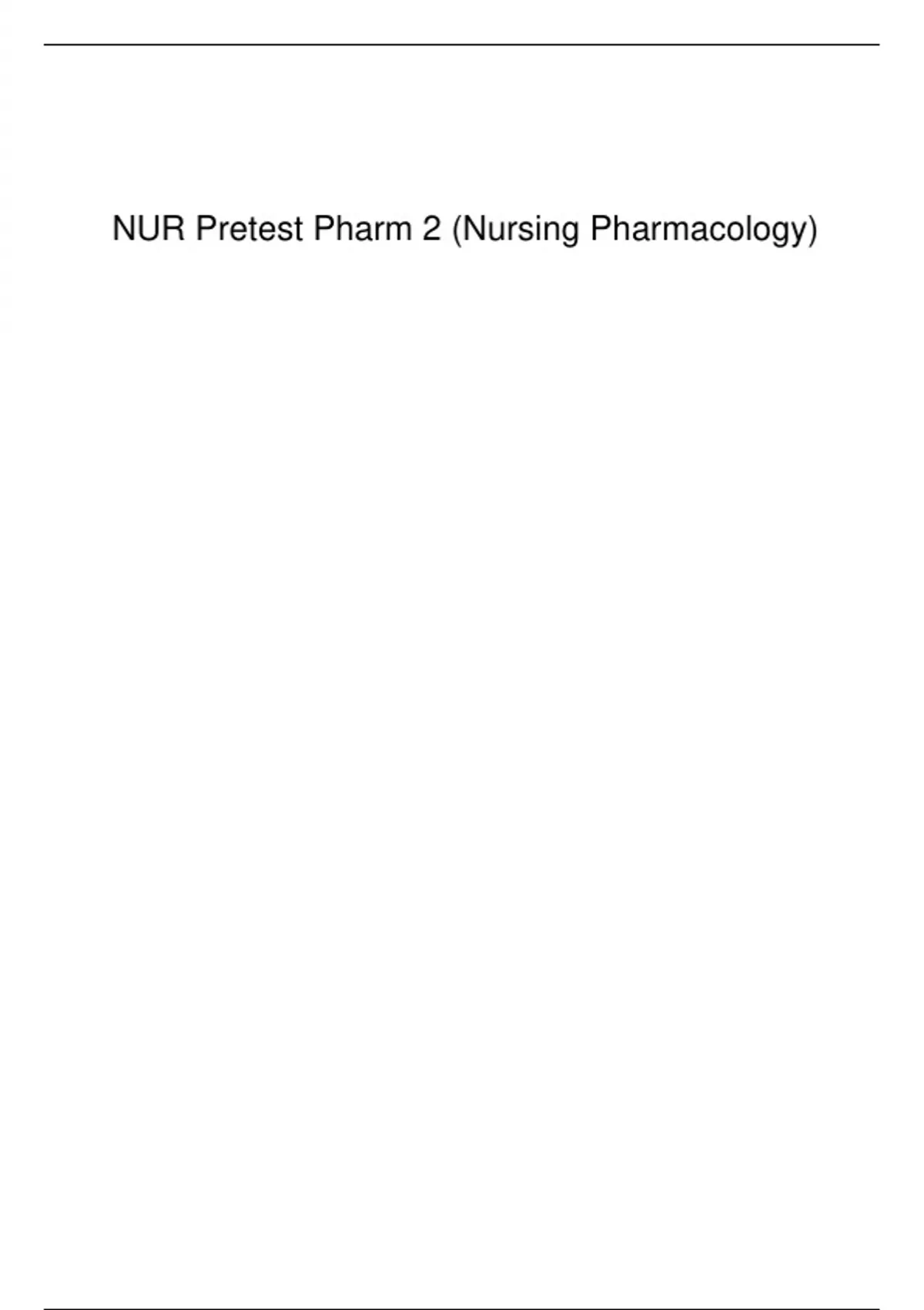NUR Pretest Pharm 2 (Nursing Pharmacology)