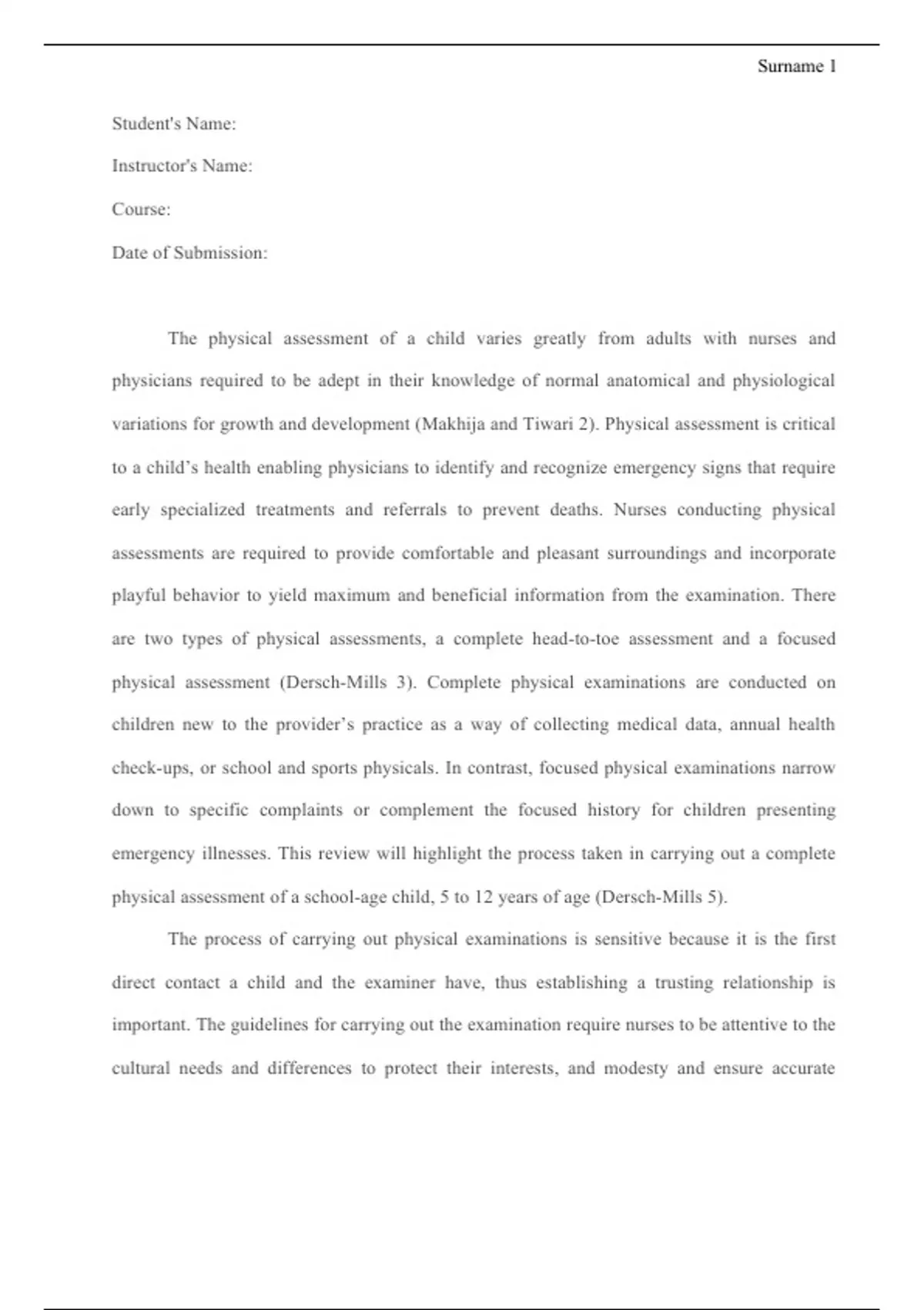the document highlights all processes involved in assessing a child, for a clinician to diagnose the health status of the child