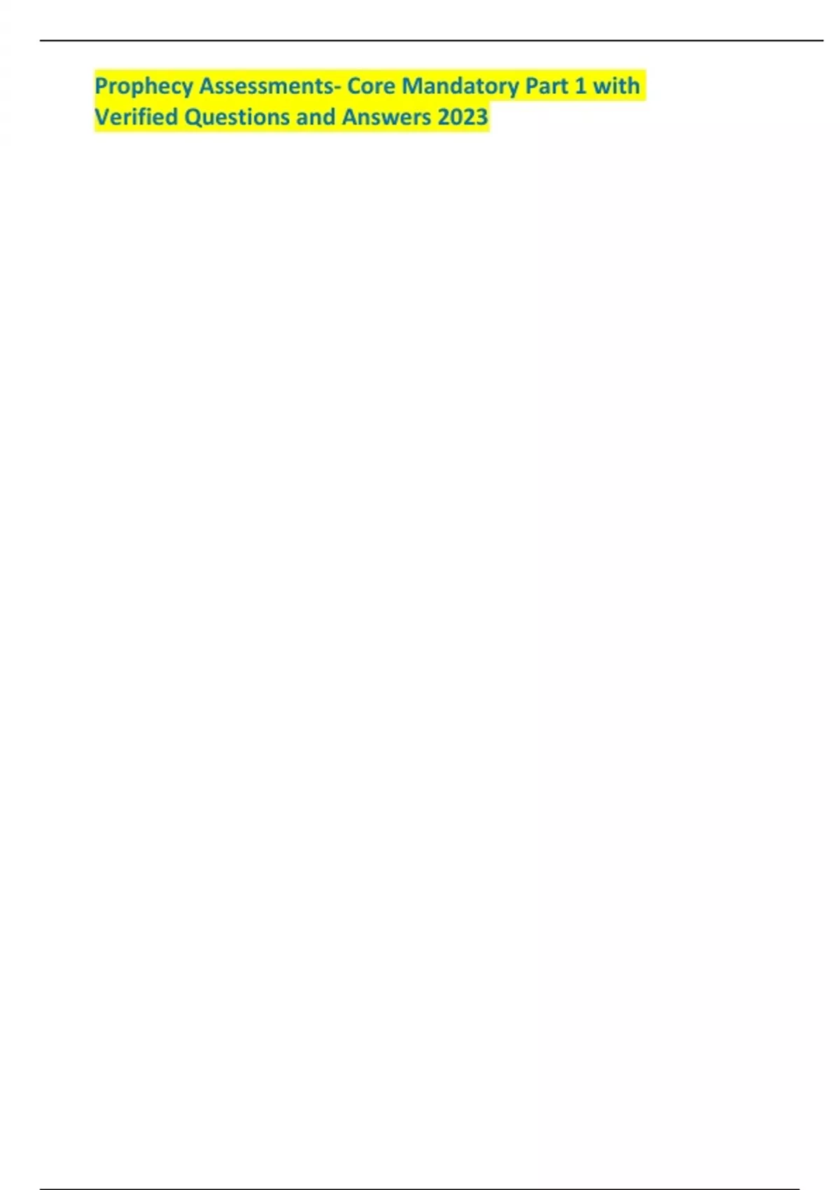 Prophecy Assessments- Core Mandatory Part 1 with Verified Questions and Answers 2023