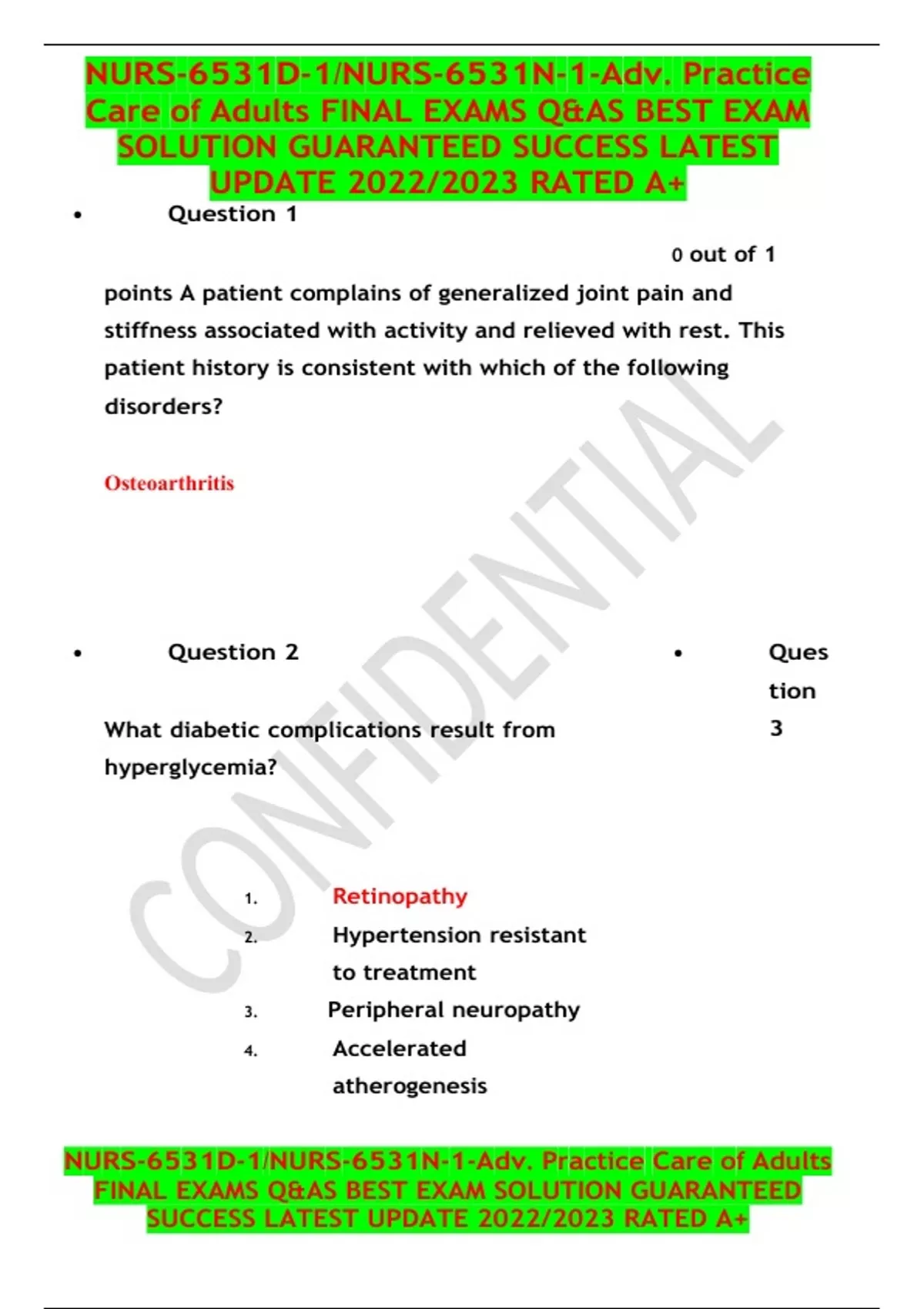 NURS-6531D-1/NURS-6531N-1-Adv. Practice Care of Adults FINAL EXAMS Q&AS BEST EXAM SOLUTION GUARANTEED SUCCESS LATEST UPDATE 2022/2023 RATED A+