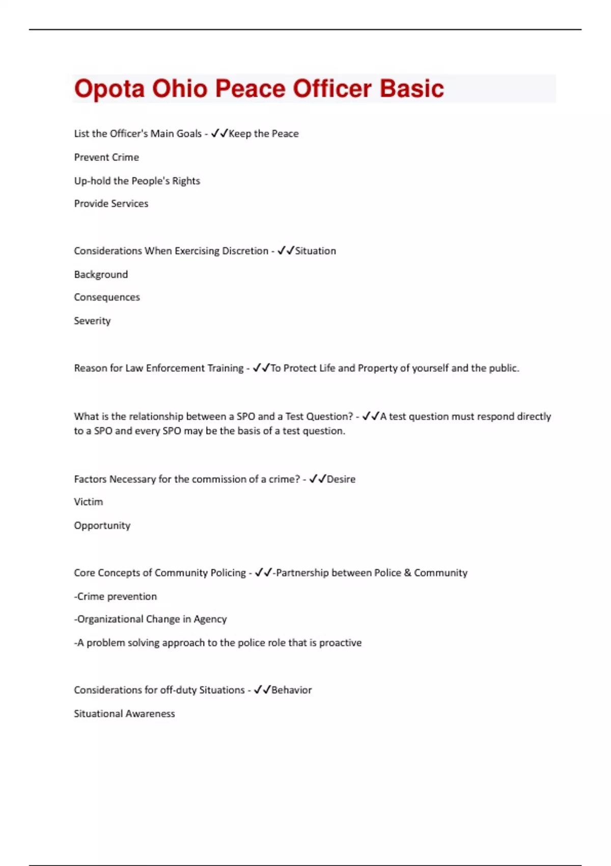 Opota Ohio Peace Officer Basic| Questions and Answers with complete solution