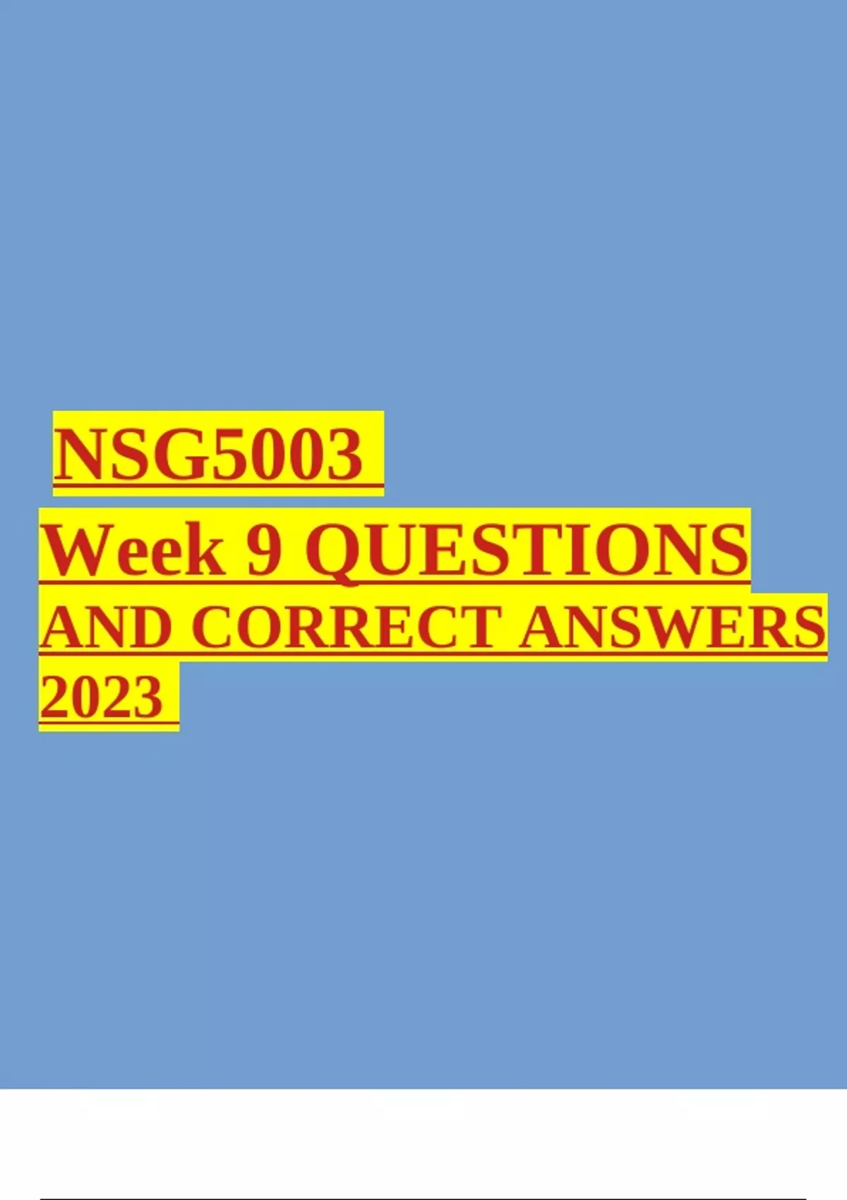 NSG5003 Week 9 QUESTIONS AND CORRECT ANSWERS 2023