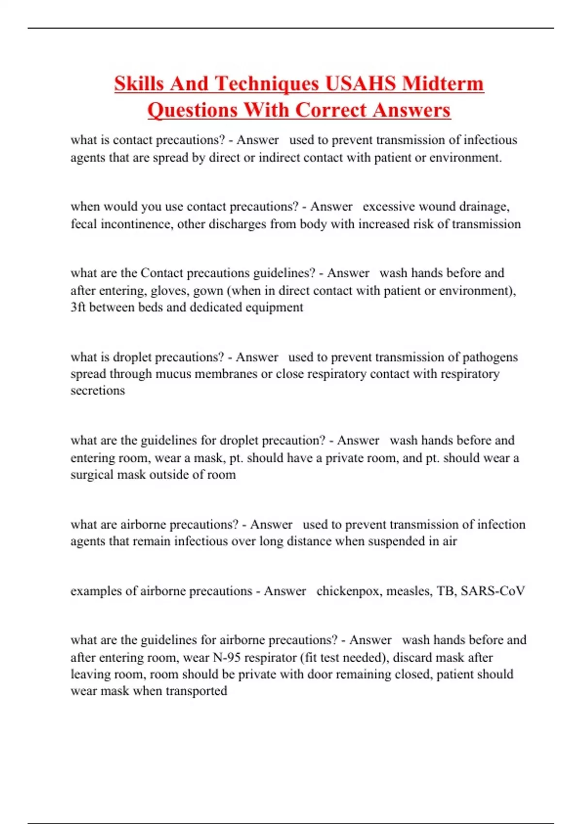 Skills And Techniques USAHS Midterm Questions With Correct Answers