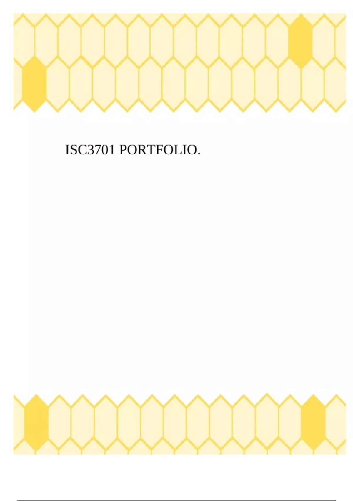 ISC3701 PORTFOLIO. Detailed working, solutions, memo, notes & explanations.