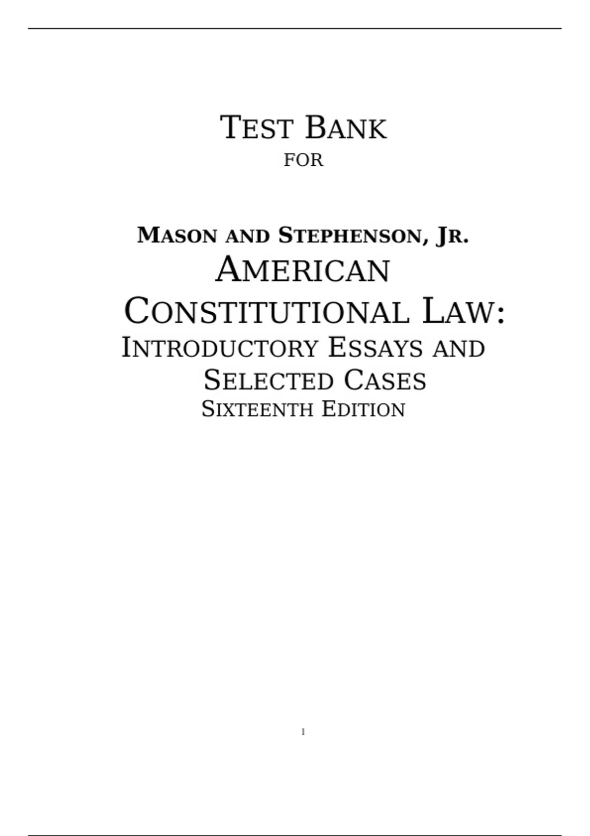 Looking for a reliable study companion to conquer your exams? Our [American Constitutional Law Introductory Essays and Selected Cases,Masson,16e] Test Bank is here to guide you every step of the way! Packed with an extensive collection of thought-provoking questions and detailed explanations, our test bank ensures a thorough understanding of the subject matter. With our comprehensive test bank by your side, you'll be well-prepared to tackle any challenge that comes your way. Invest in your academic success today by purchasing the [American Constitutional Law Introductory Essays and Selected Cases,Masson,16e] Test Bank!