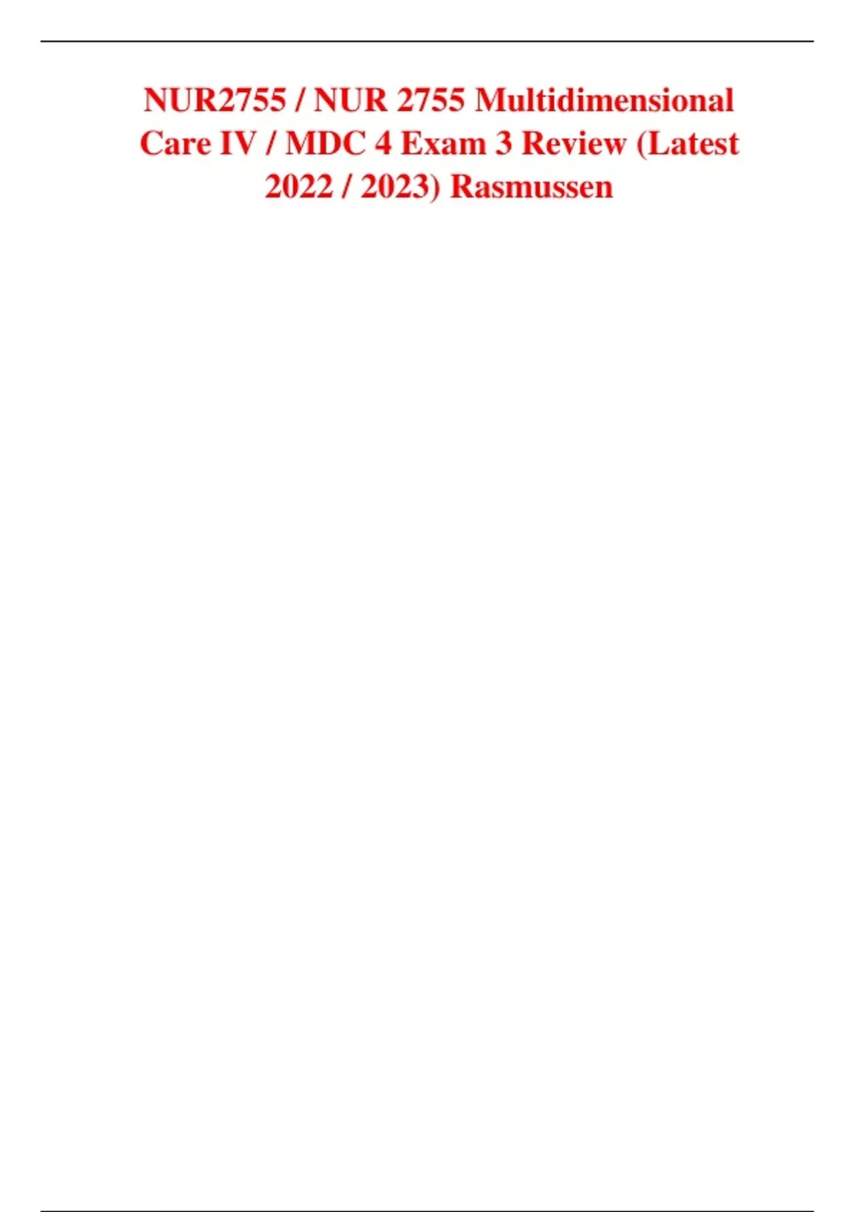 NUR2755 / NUR 2755 Multidimensional Care IV / MDC 4 Exam 3 Review (Latest 2022 / 2023) Rasmussen