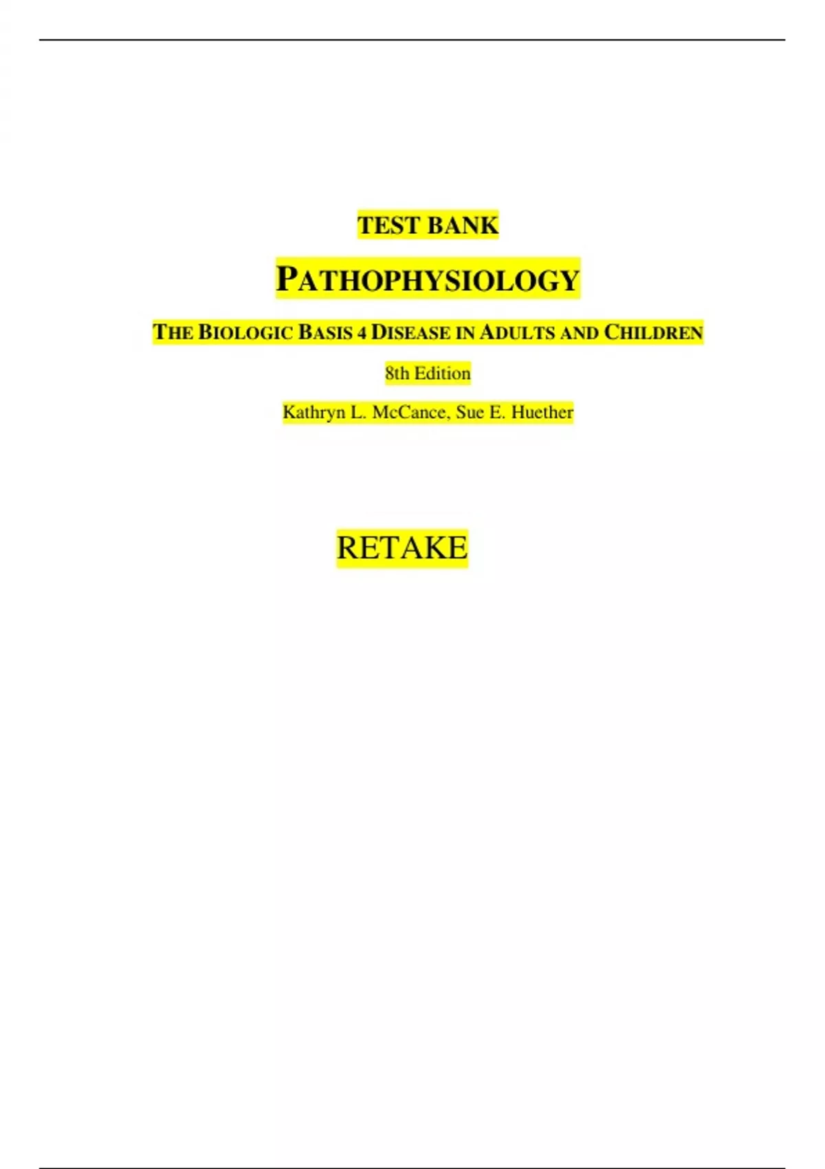 TEST BANK PATHOPHYSIOLOGY THE BIOLOGIC BASIS 4 DISEASE IN ADULTS AND CHILDREN 8th Edition Kathryn L. McCance, Sue E. Huether