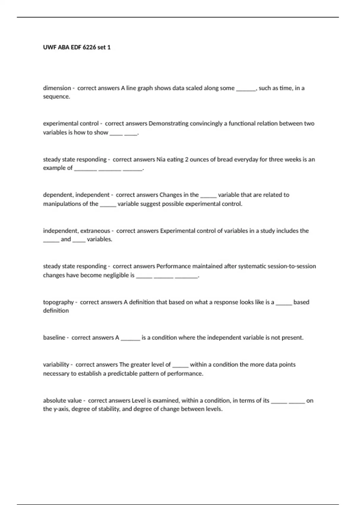 UWF ABA EDF 6226 set 1 questions 100% correct answers
