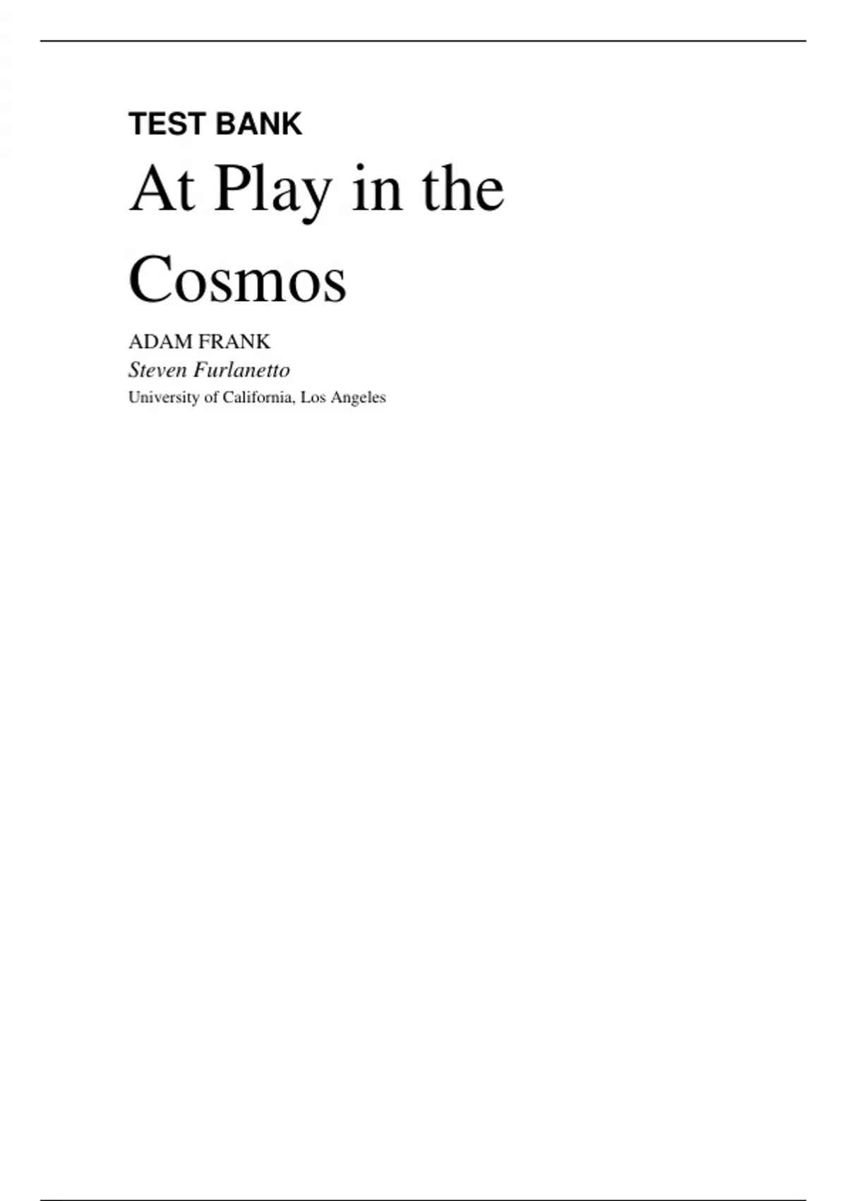 Improve Your Test Performance with the High-Quality [Astronomy AT PLAY IN THE COSMOS,Frank] Test Bank