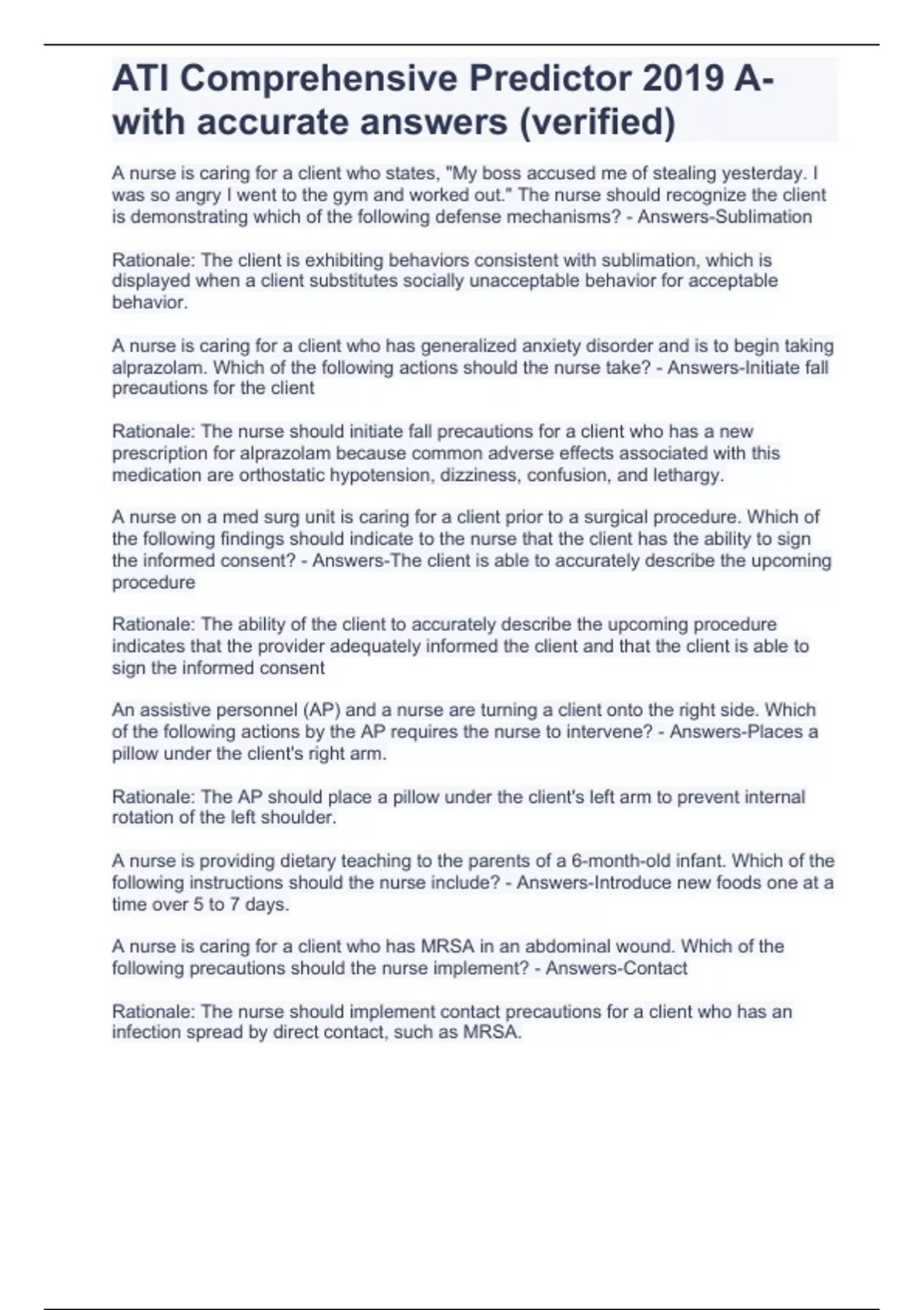 ATI Comprehensive Predictor 2019 A-with accurate answers (verified)graded A