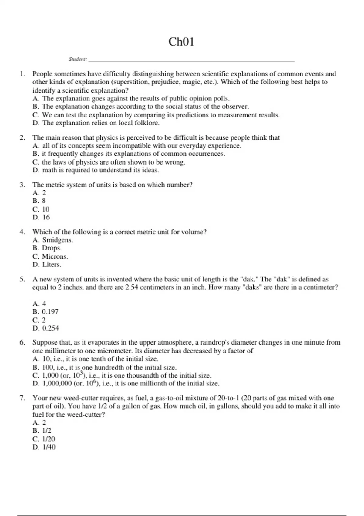 20. In order to gain a more scientific worldview, the student is encouraged to