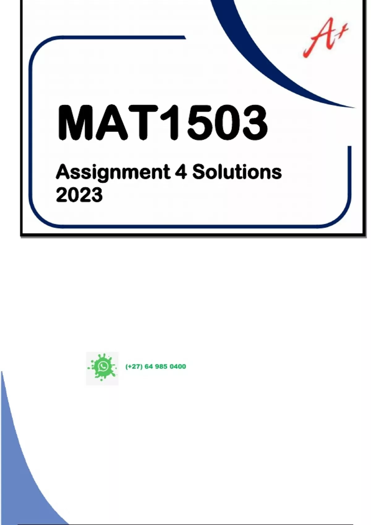 MAT1503 - ASSIGNMENT 4 SOLUTIONS - 2023