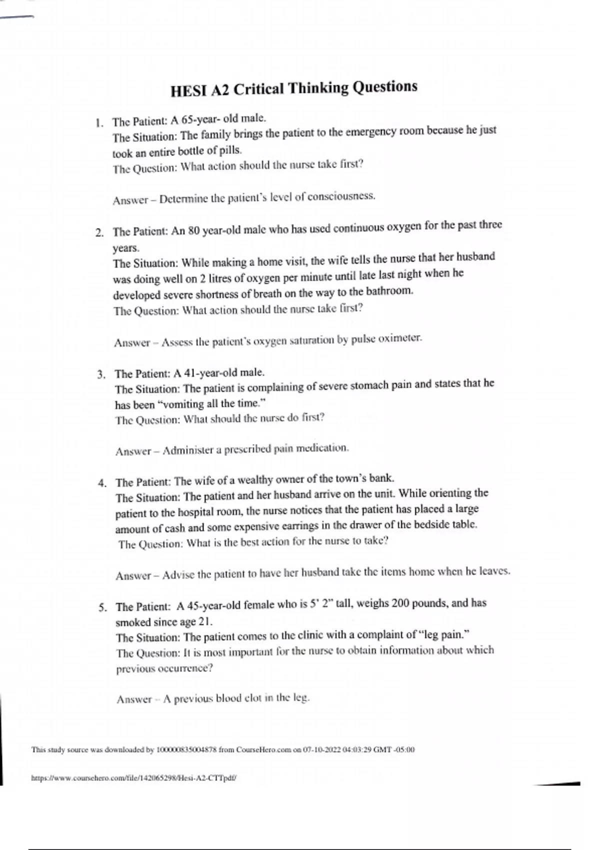HESI A2 Critical Thinking Questions and Answers 2023.