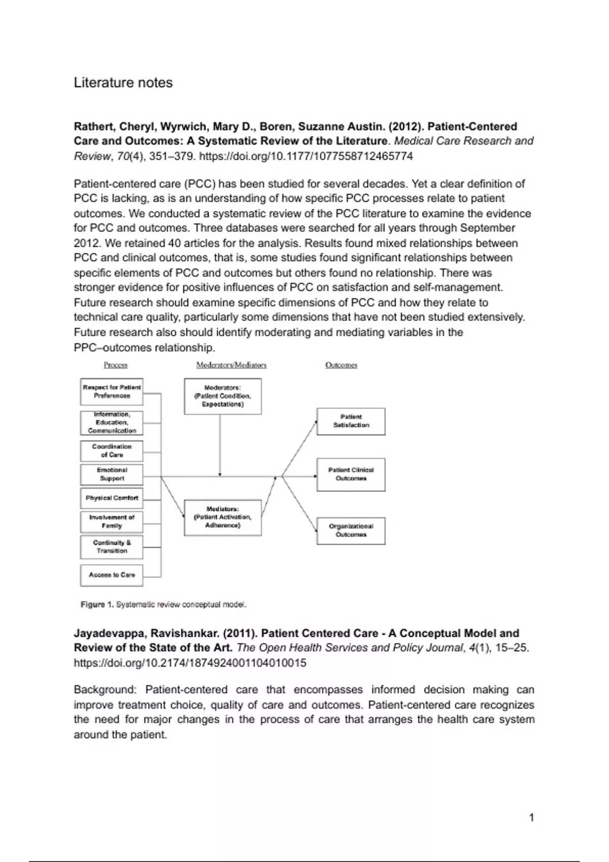 Literatuur aantekeningen, samenvatting verplichte artikelen van het vak patient centered care delivery aan de Erasmus Universiteit Rotterdam, onderdeel van het master programma Health Care Management