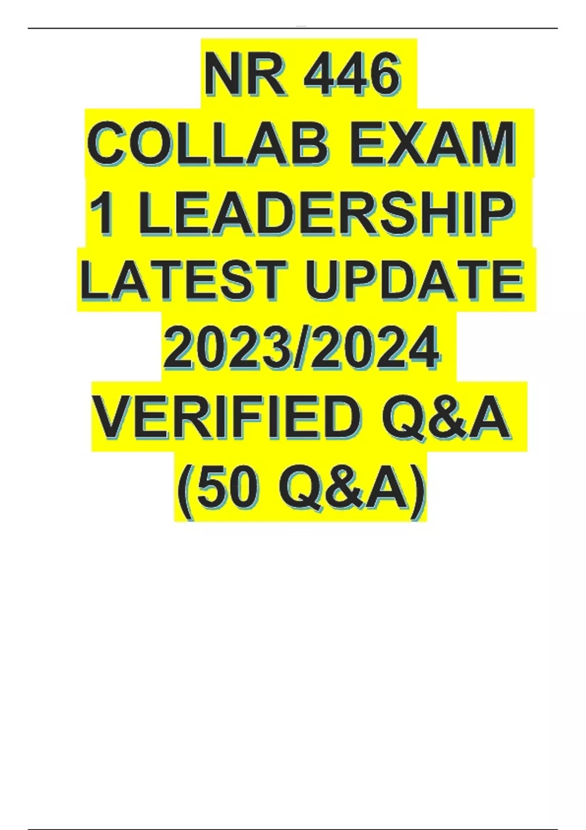 NR 446 COLLAB EXAM 1 LEADERSHIP LATEST UPDATE 2023/2024 VERIFIED Q&A (50 Q&A)