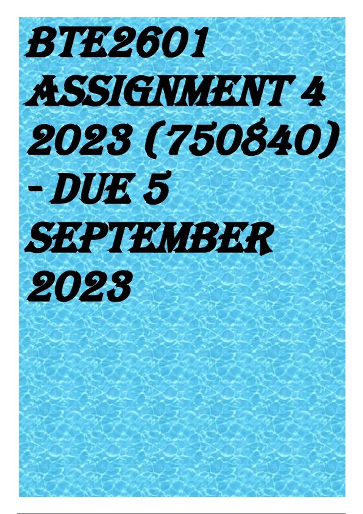 BTE2601 Assignment 4 2023 () - DUE 5 September 2023 QUESTIONS AND ANSWERS