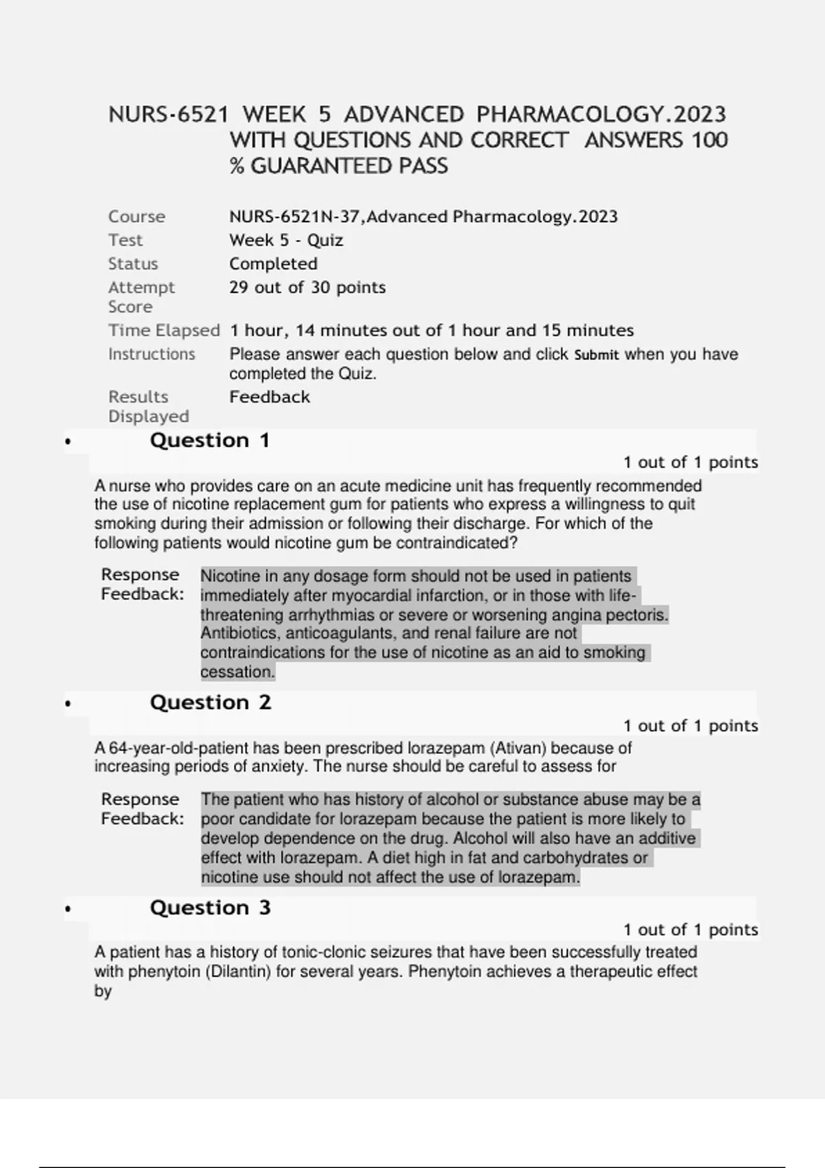 NURS-6521 WEEK 5 ADVANCED PHARMACOLOGY.2023 WITH QUESTIONS AND CORRECT ANSWERS 100 % GUARANTEED PASS