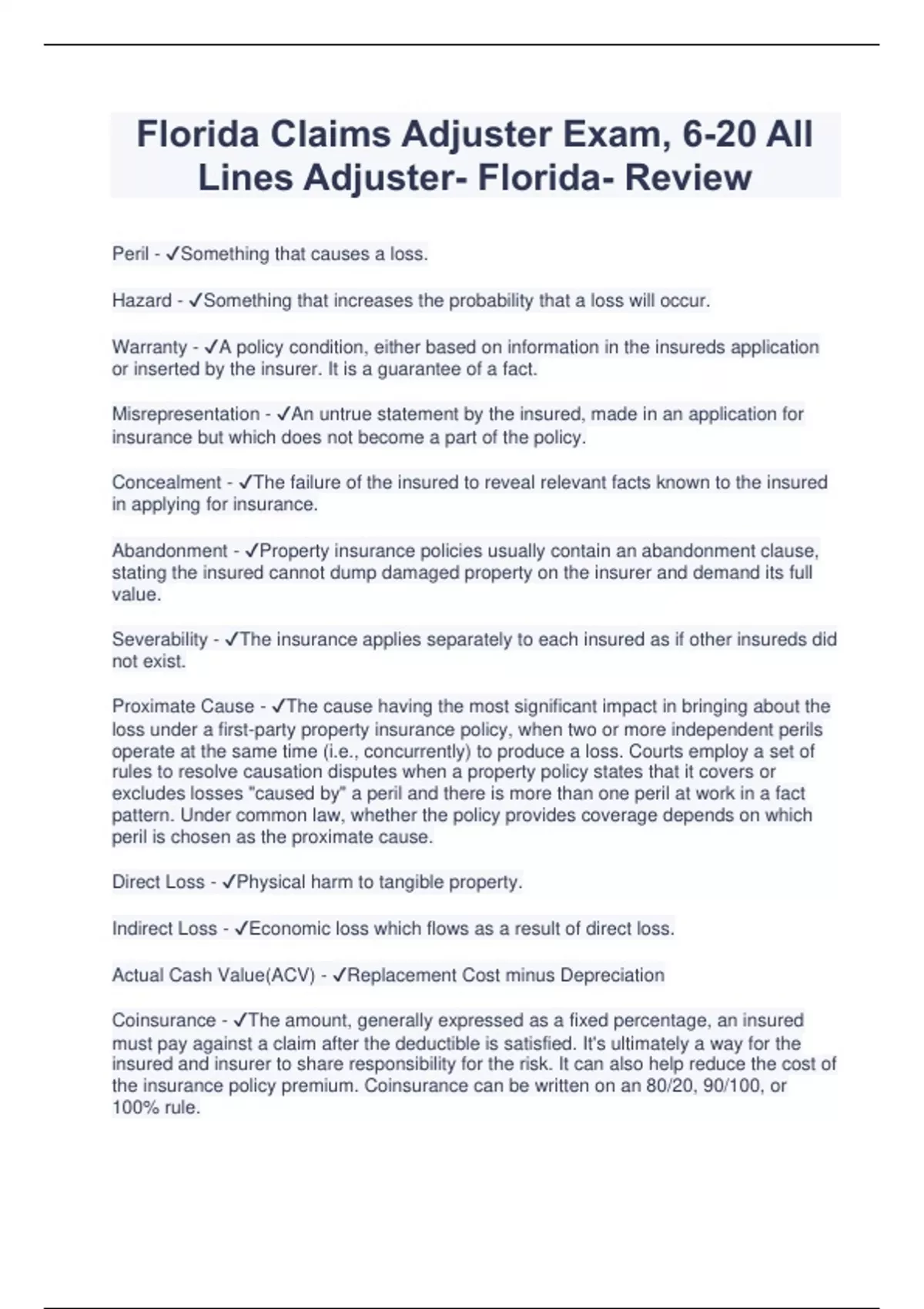 Florida Claims Adjuster Exam Bundle 2023/2024