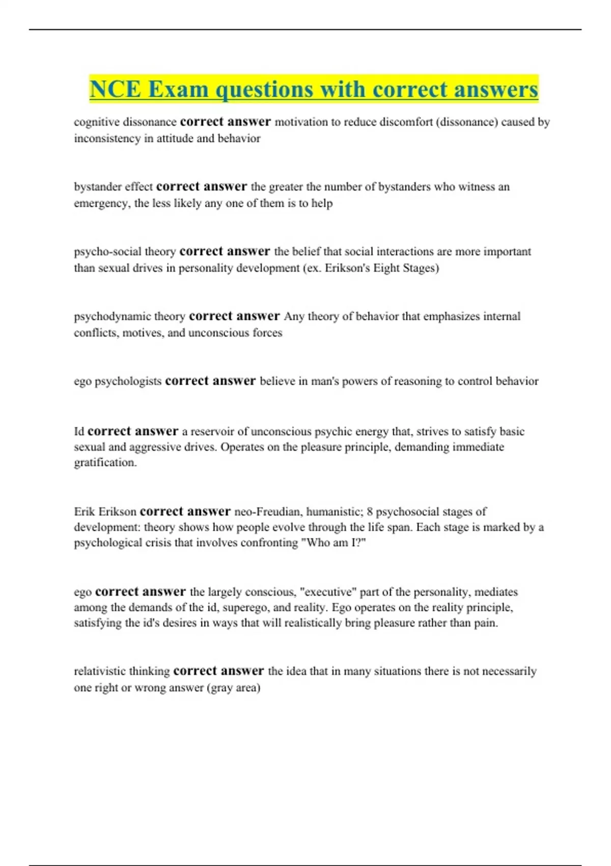 NCE Exam questions with correct answers