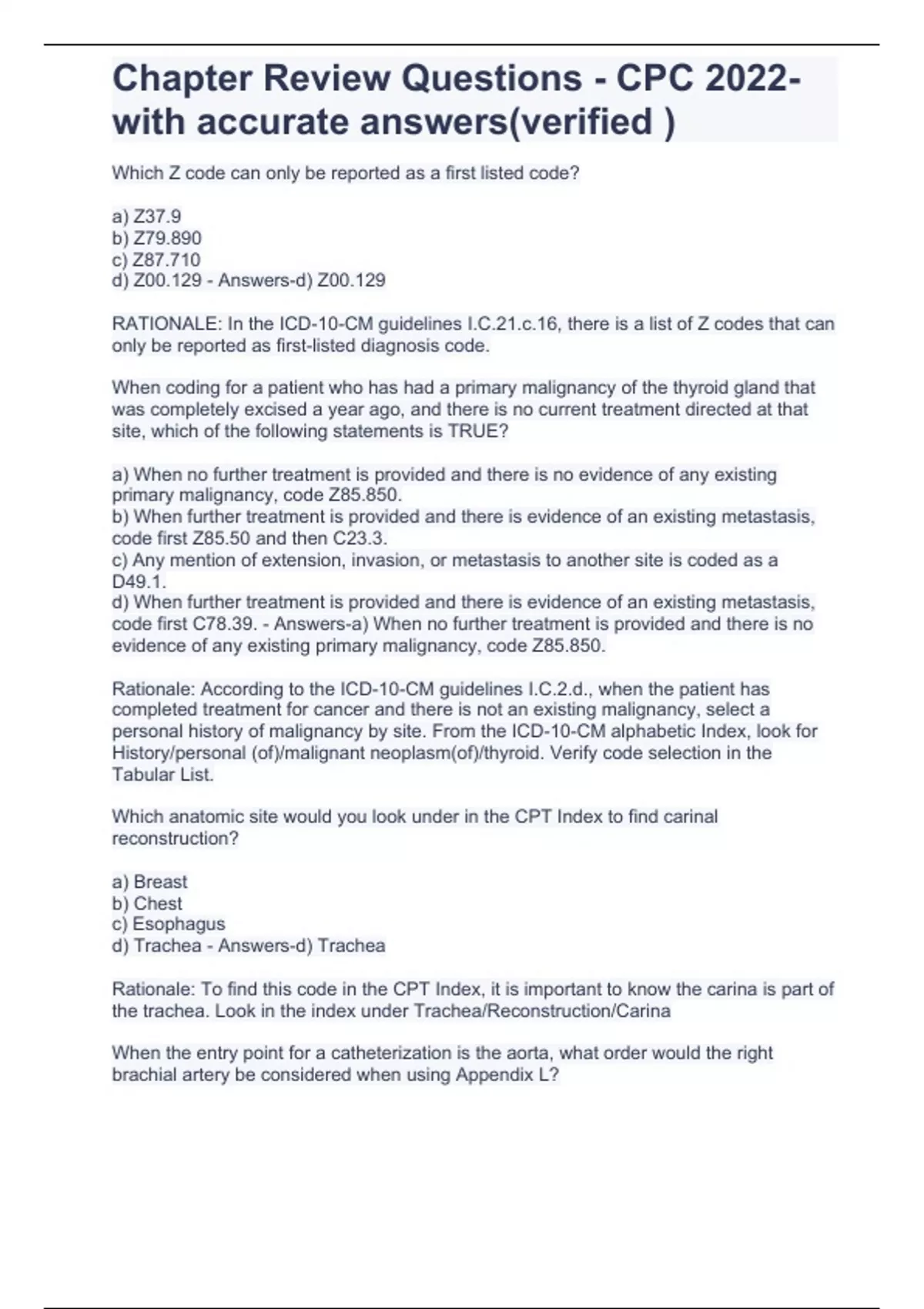 Chapter Review Questions - CPC 2022-with accurate answers(verified )
