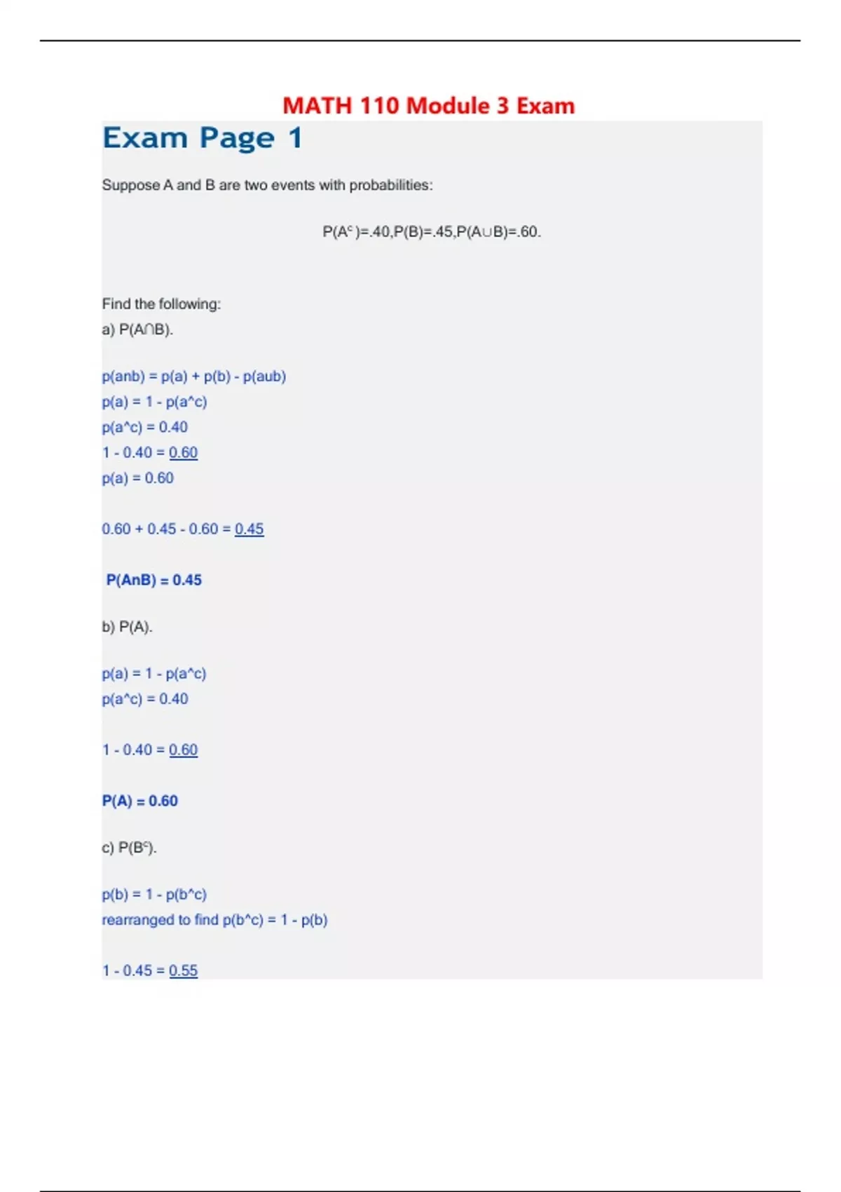 MATH 110 Module 3 Exam