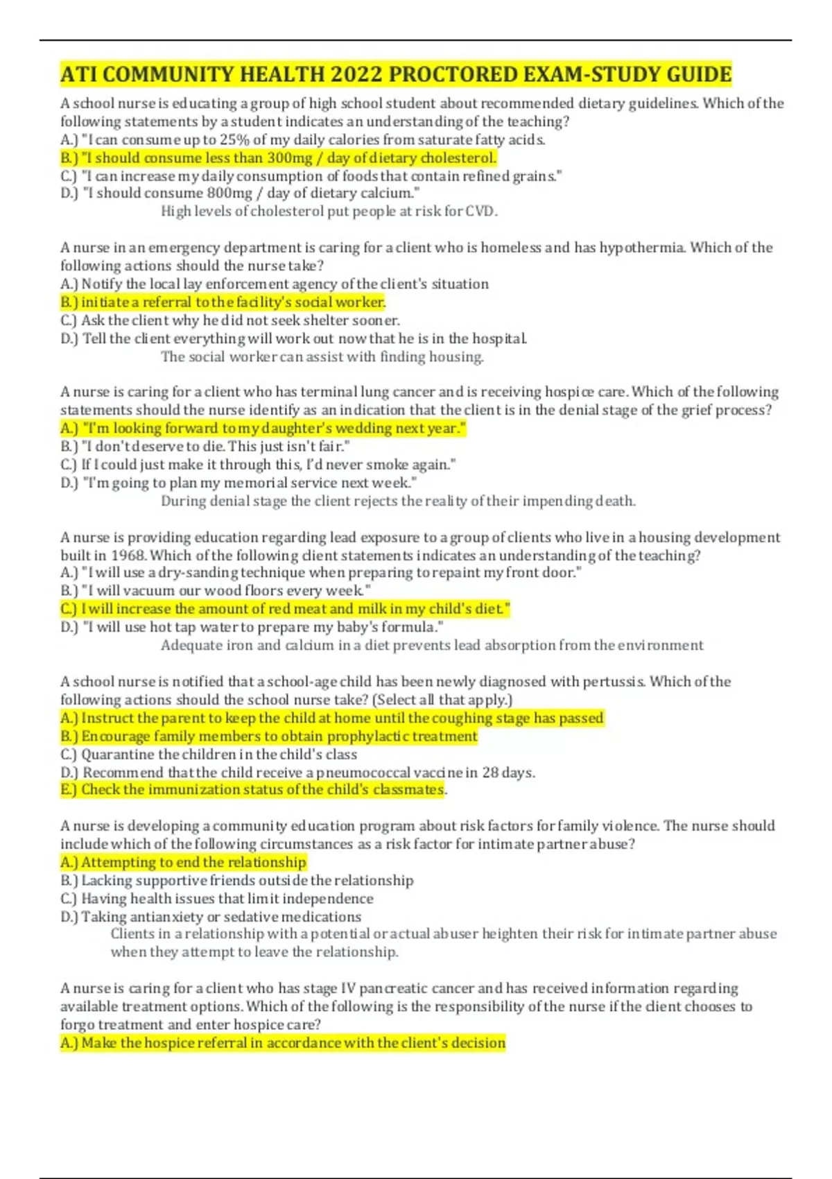 ATI COMMUNITY HEALTH 2022 PROCTORED EXAM-STUDY GUIDE