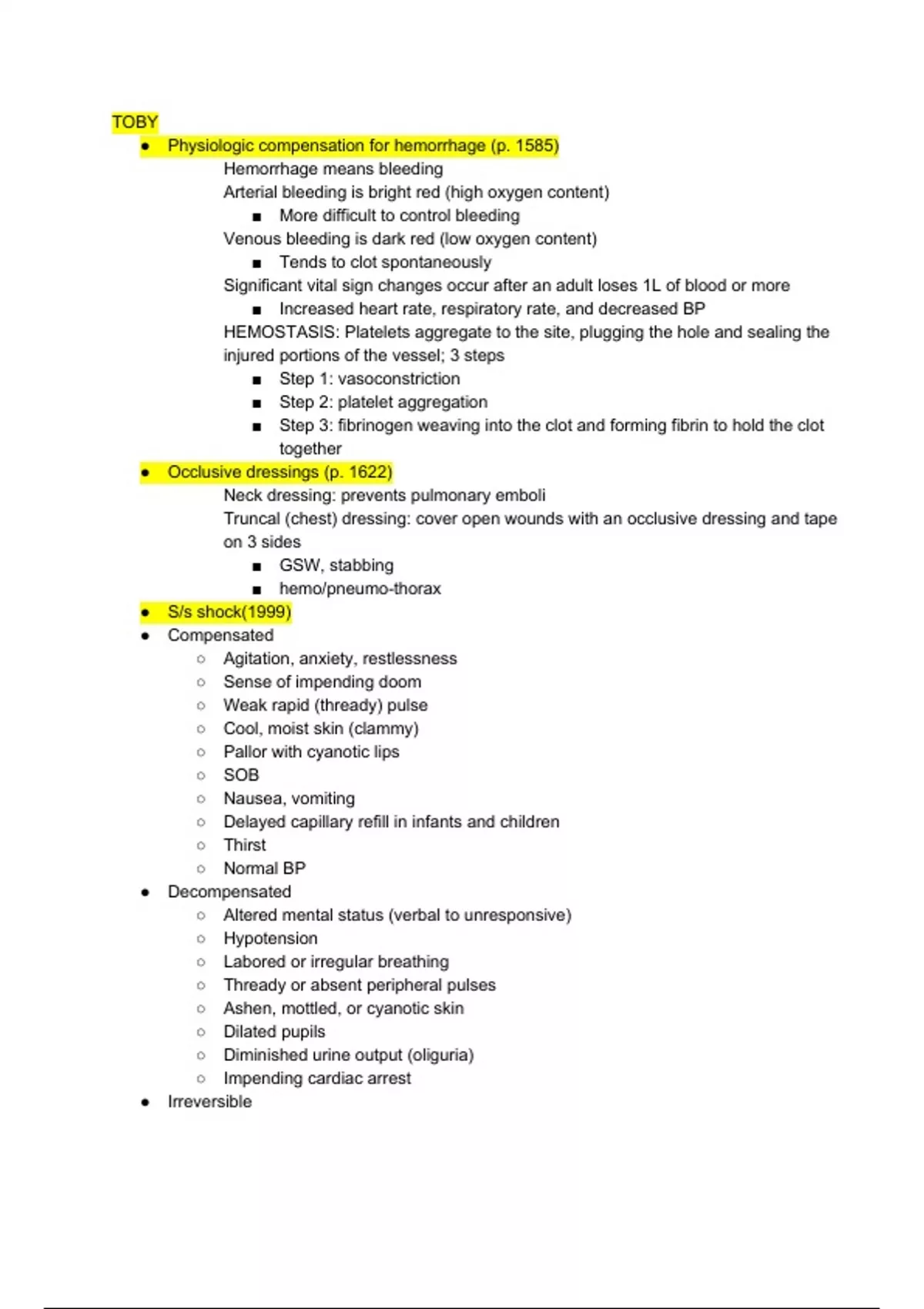 Truncal (chest) dressing: cover open wounds with an occlusive dressing and tape