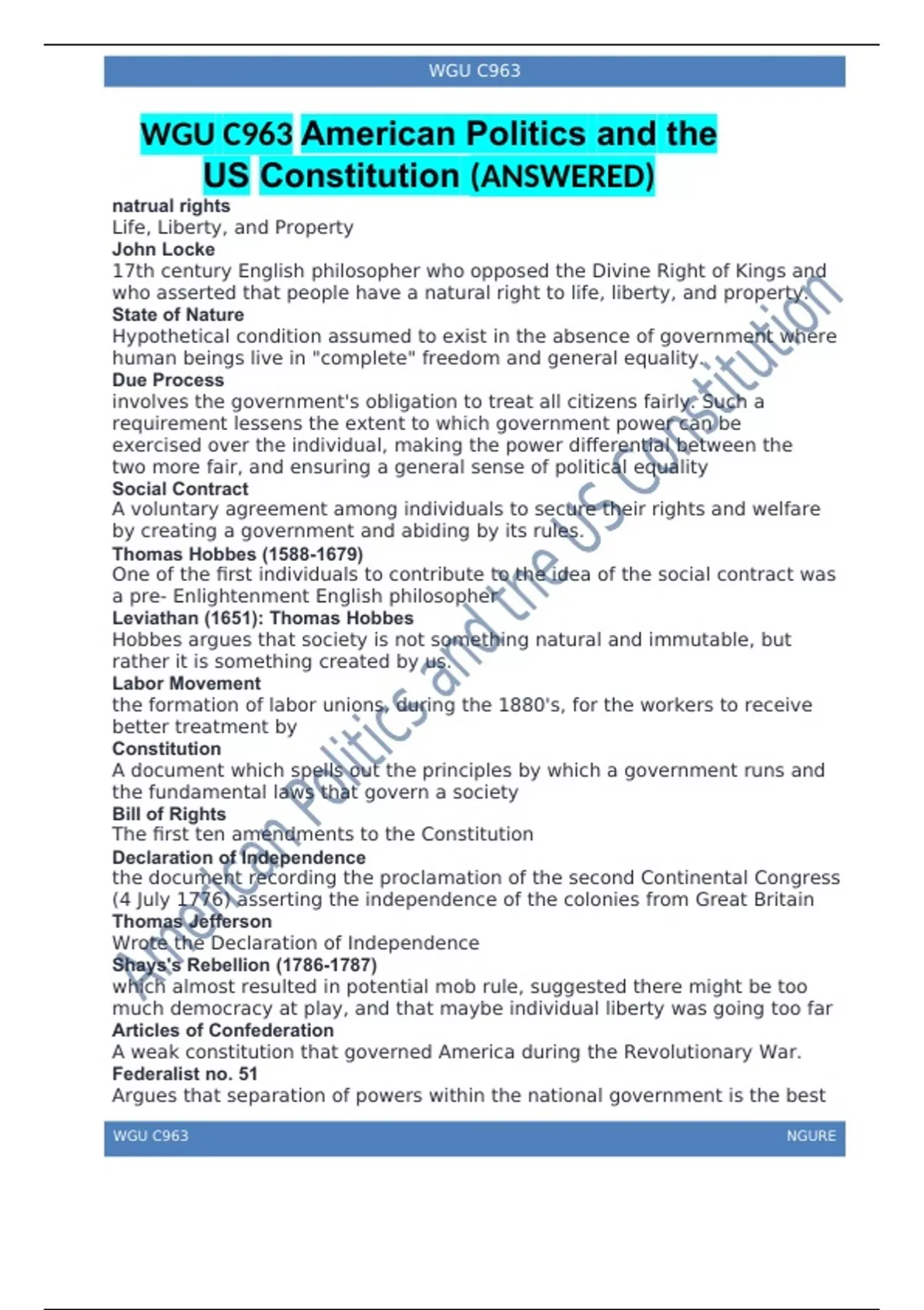 Summary American Politics and the US Constitution.docx