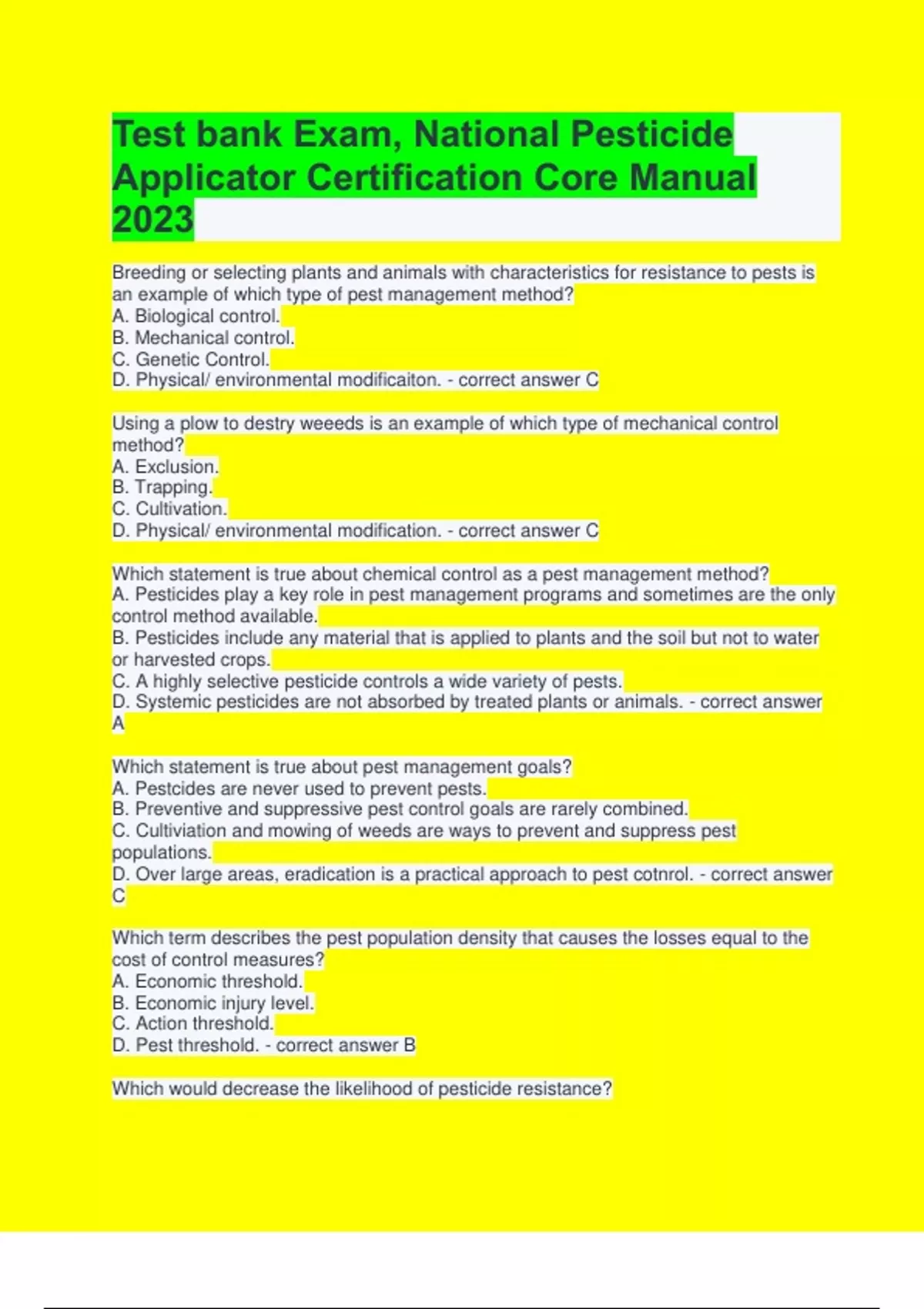 Test bank Exam, National Pesticide Applicator Certification Core Manual 2023