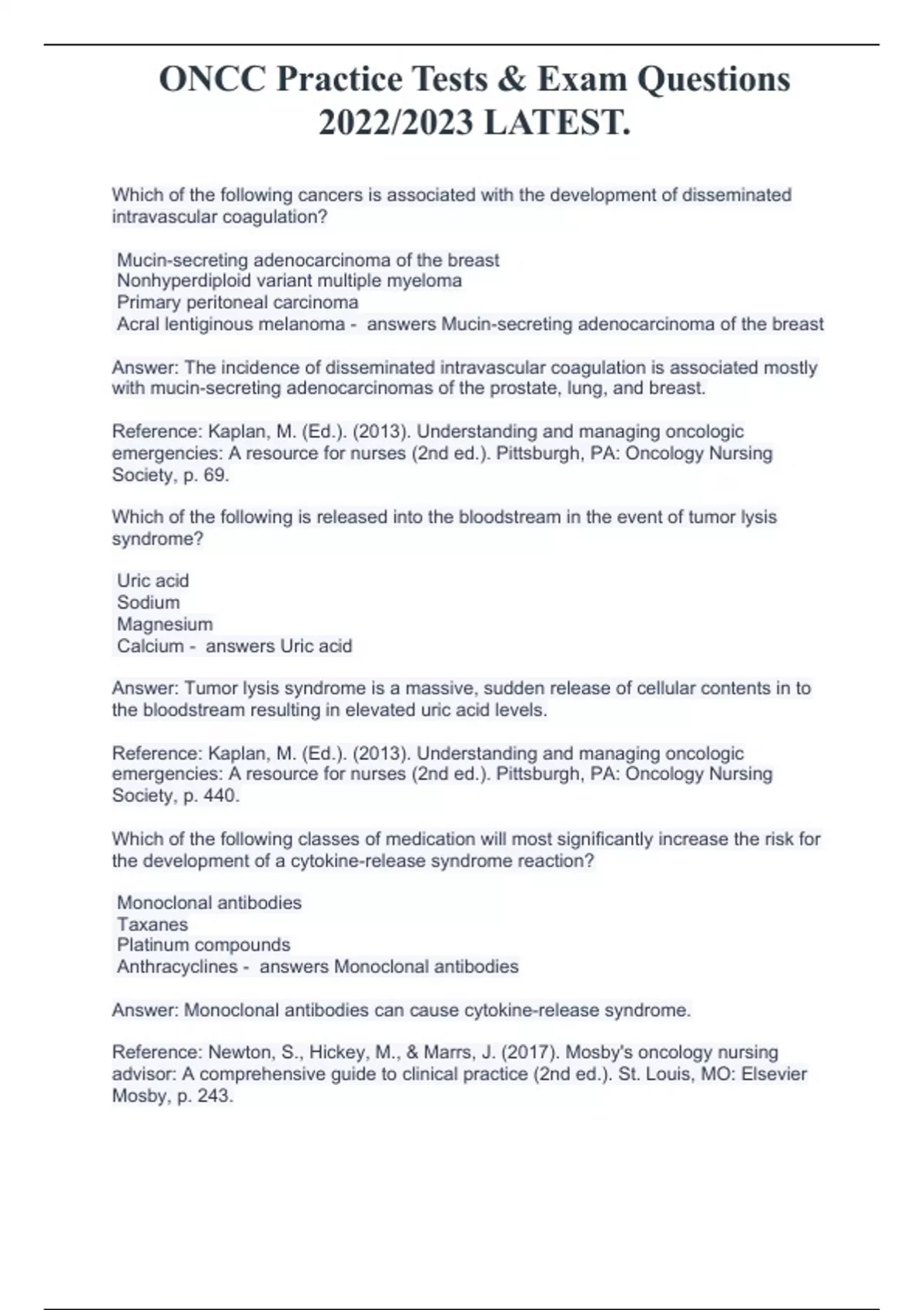 ONCC Practice Tests & Exam Questions 2022/2023 LATEST.