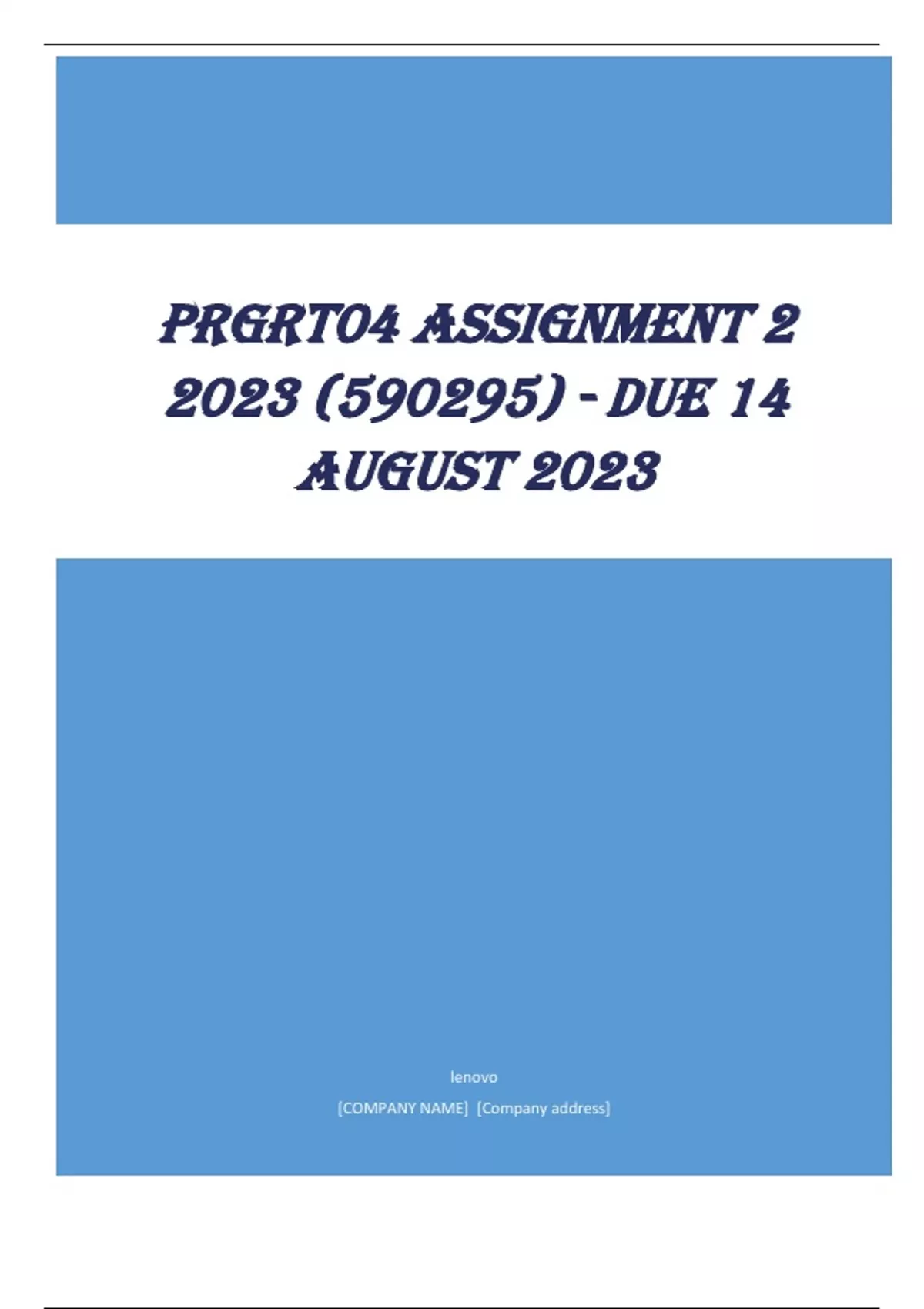 PRGRT04 Assignment 2 2023 (590295) - DUE 14 August 2023