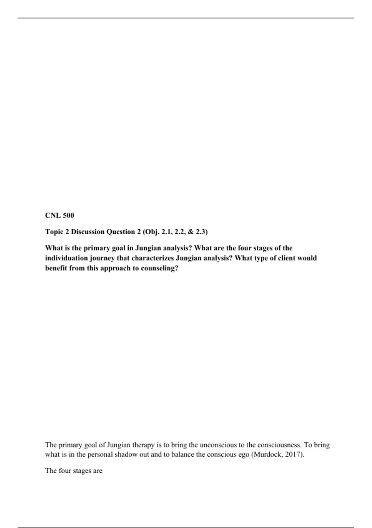 What is the primary goal in Jungian analysis? What are the four stages of the individuation journey that characterizes Jungian analysis? What type of client would benefit from this approach to counseling?