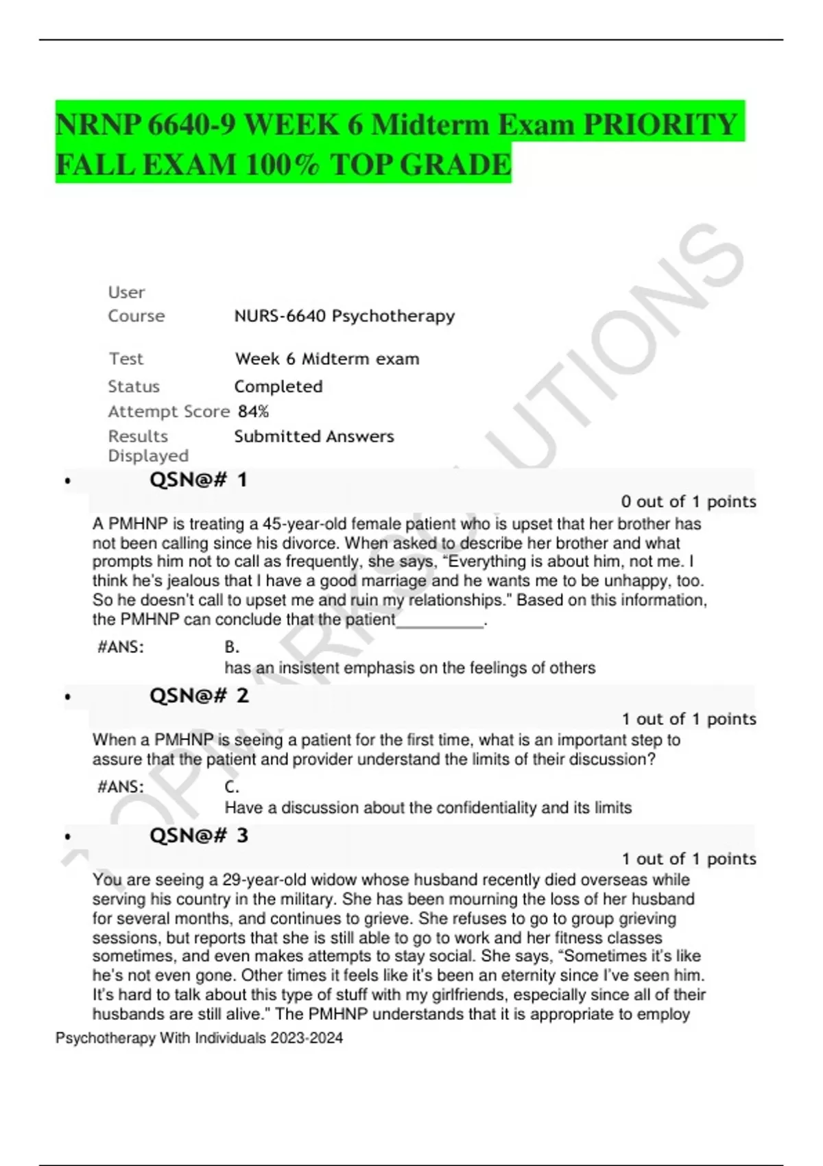 nrnp 6640 psychotherapy with individuals exam 2023