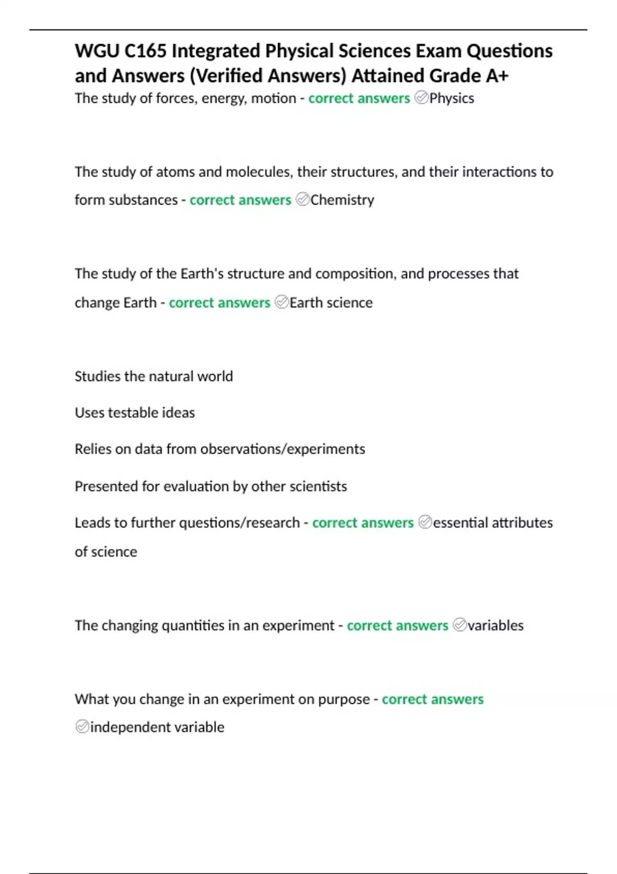 WGU C165 Integrated Physical Sciences Exam Questions and Answers (Verified Answers) Attained Grade A+
