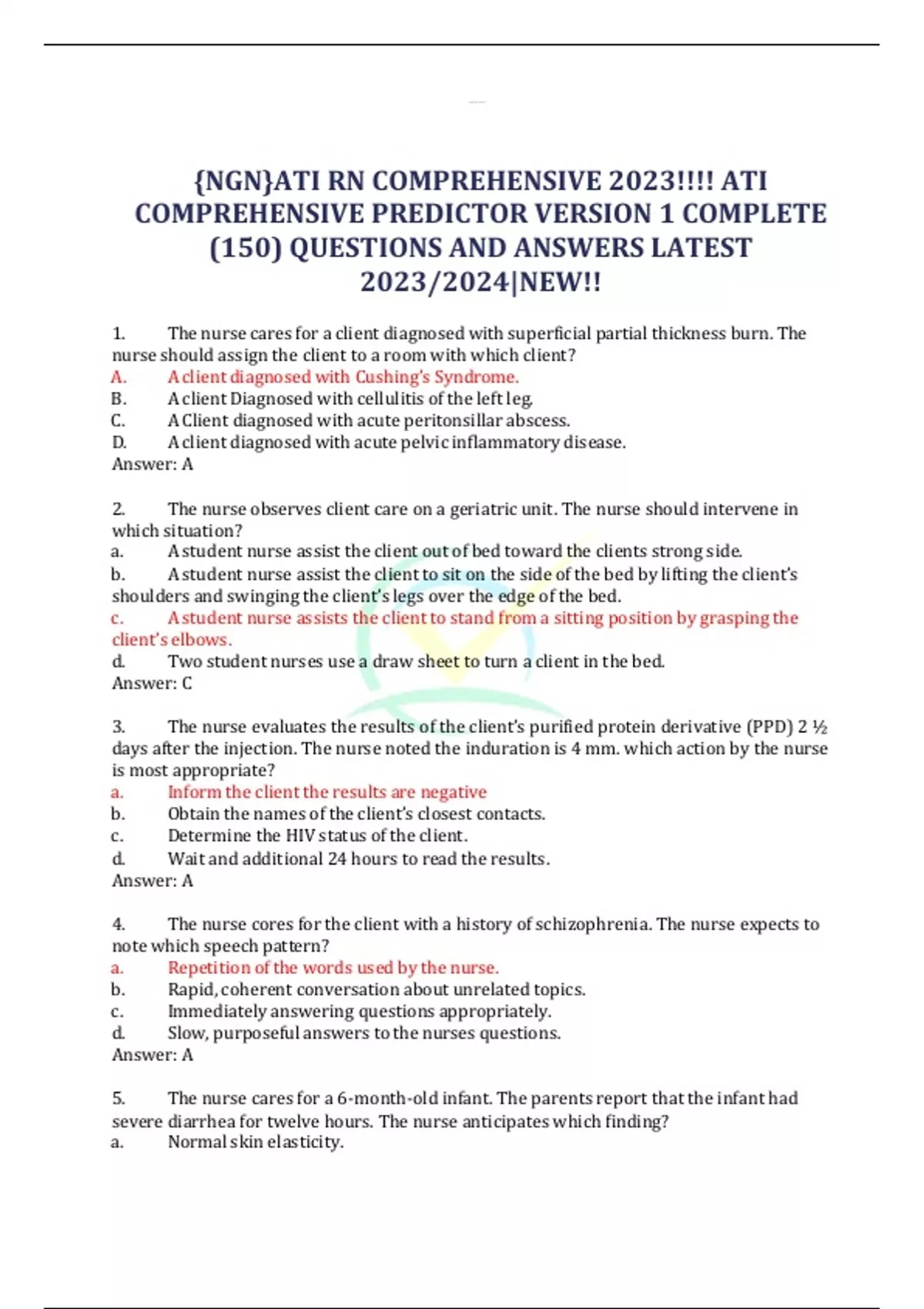 {NGN}ATI RN COMPREHENSIVE 2023!!!! ATI COMPREHENSIVE PREDICTOR VERSION 1 COMPLETE (150) QUESTIONS AND ANSWERS LATEST 2023/2024|NEW!!
