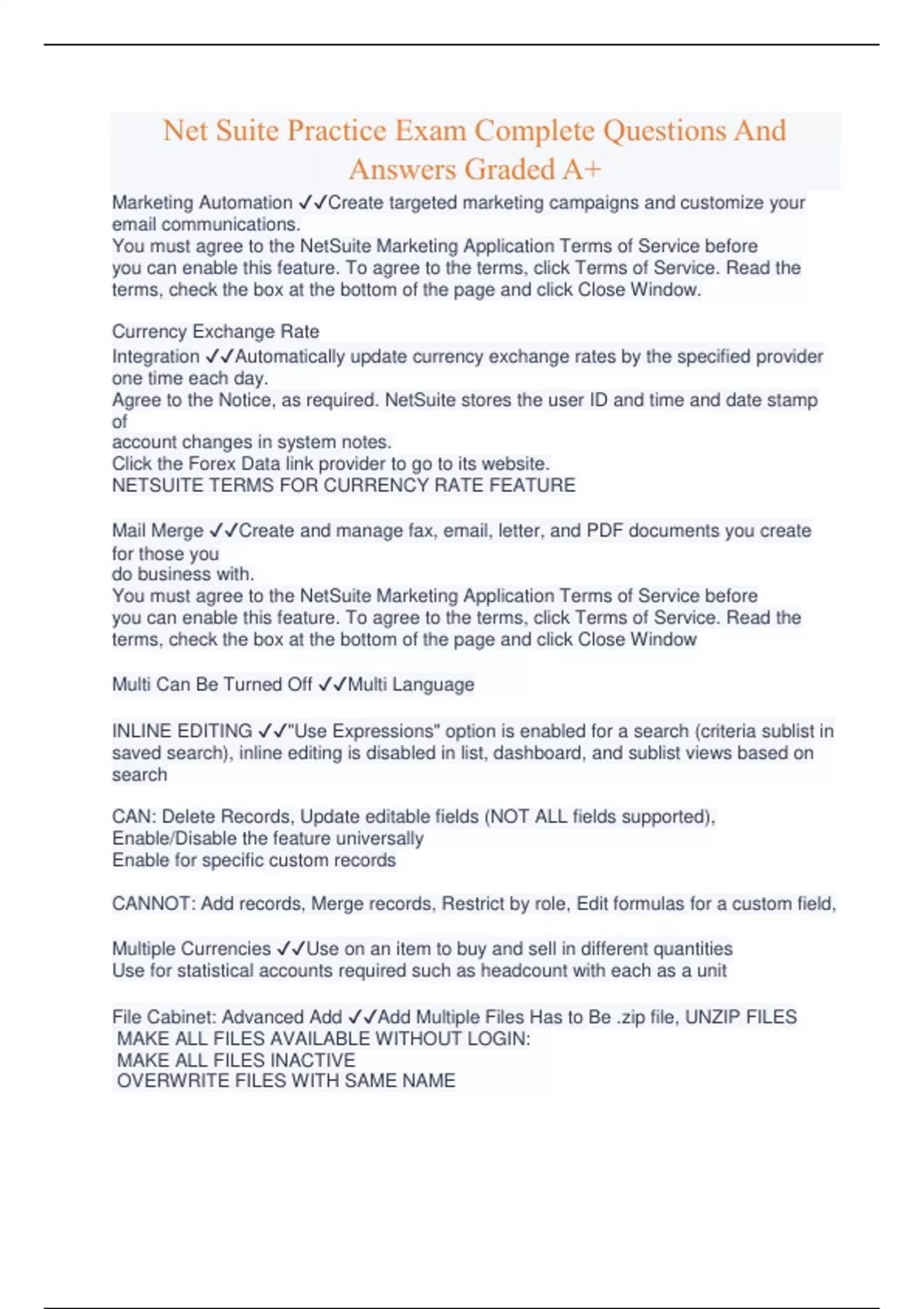 Net Suite Practice Exam Complete Questions And Answers Graded A+