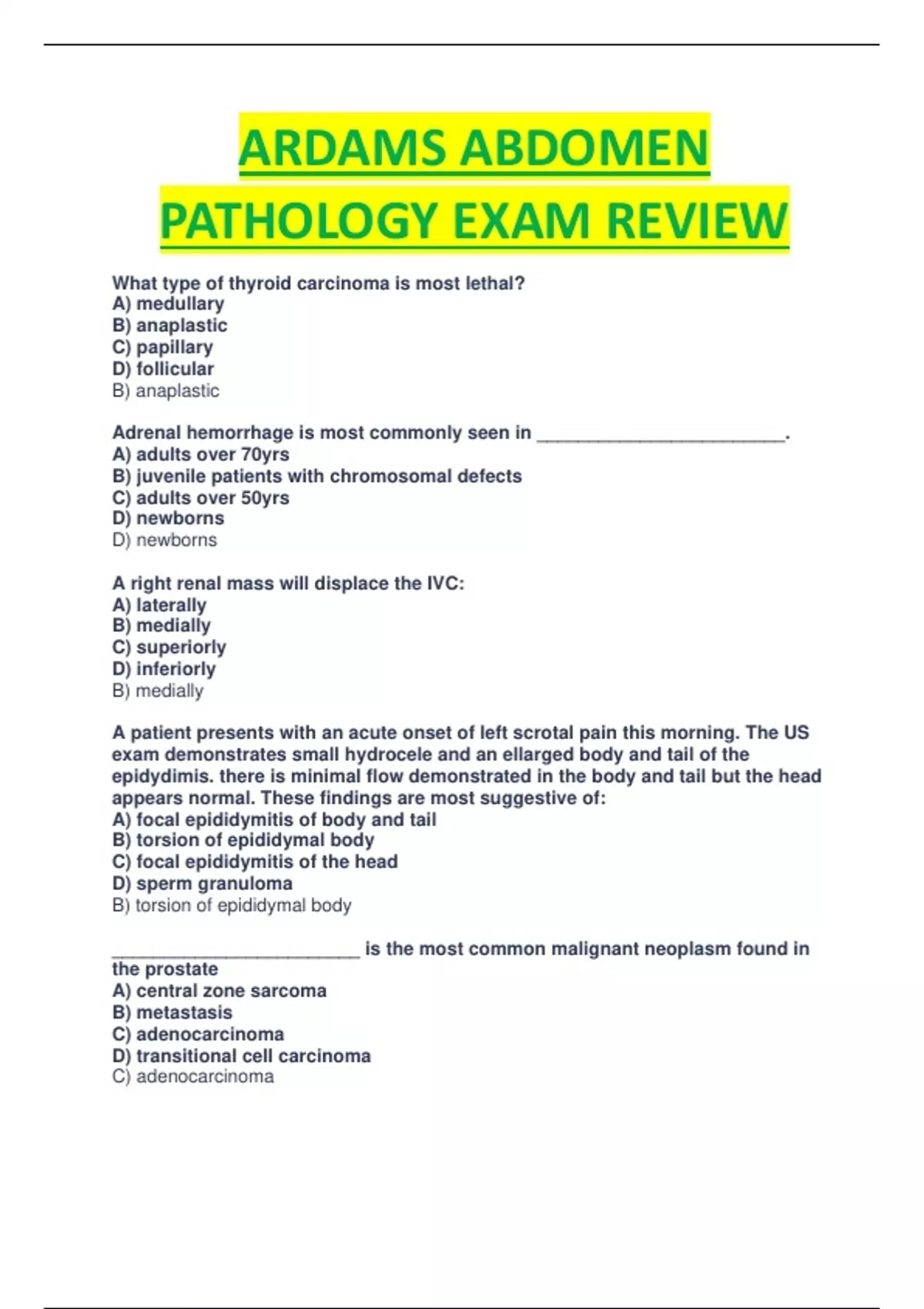 ARDAMS ABDOMEN PATHOLOGY EXAM REVIEW 2023
