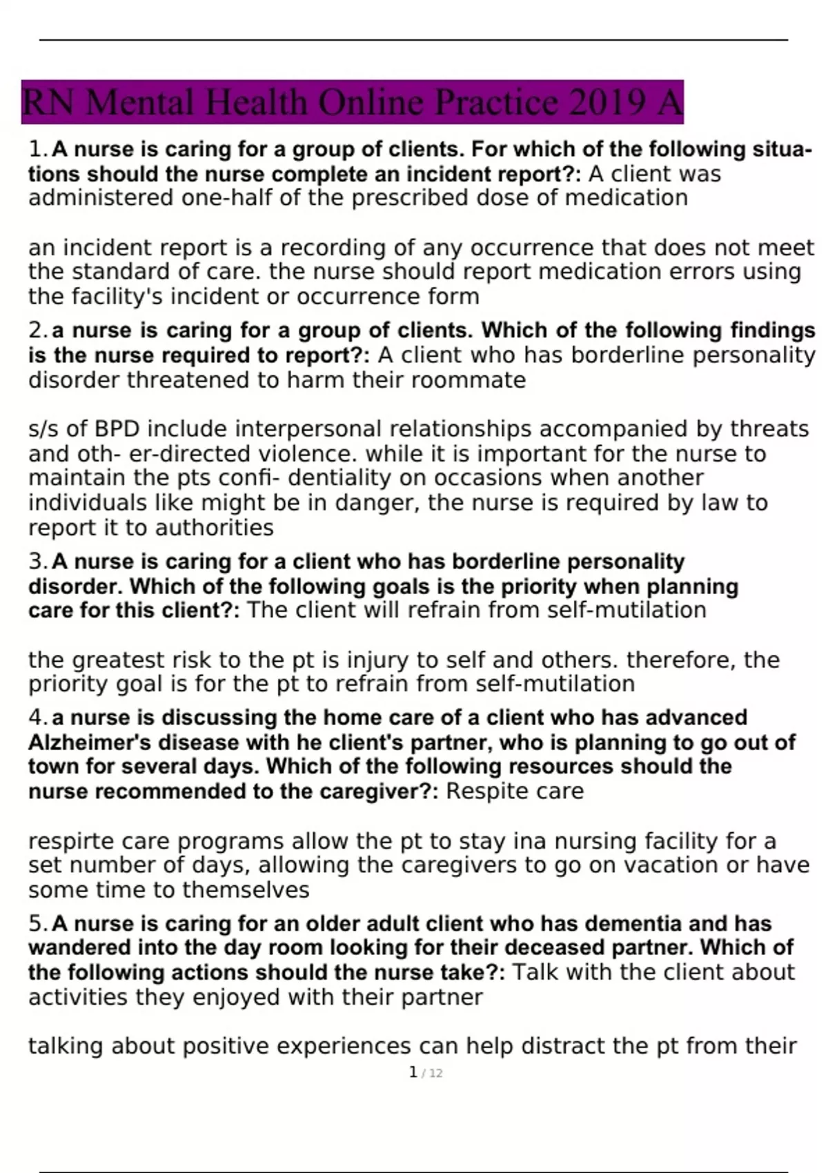 - RN Mental Health Online Practice