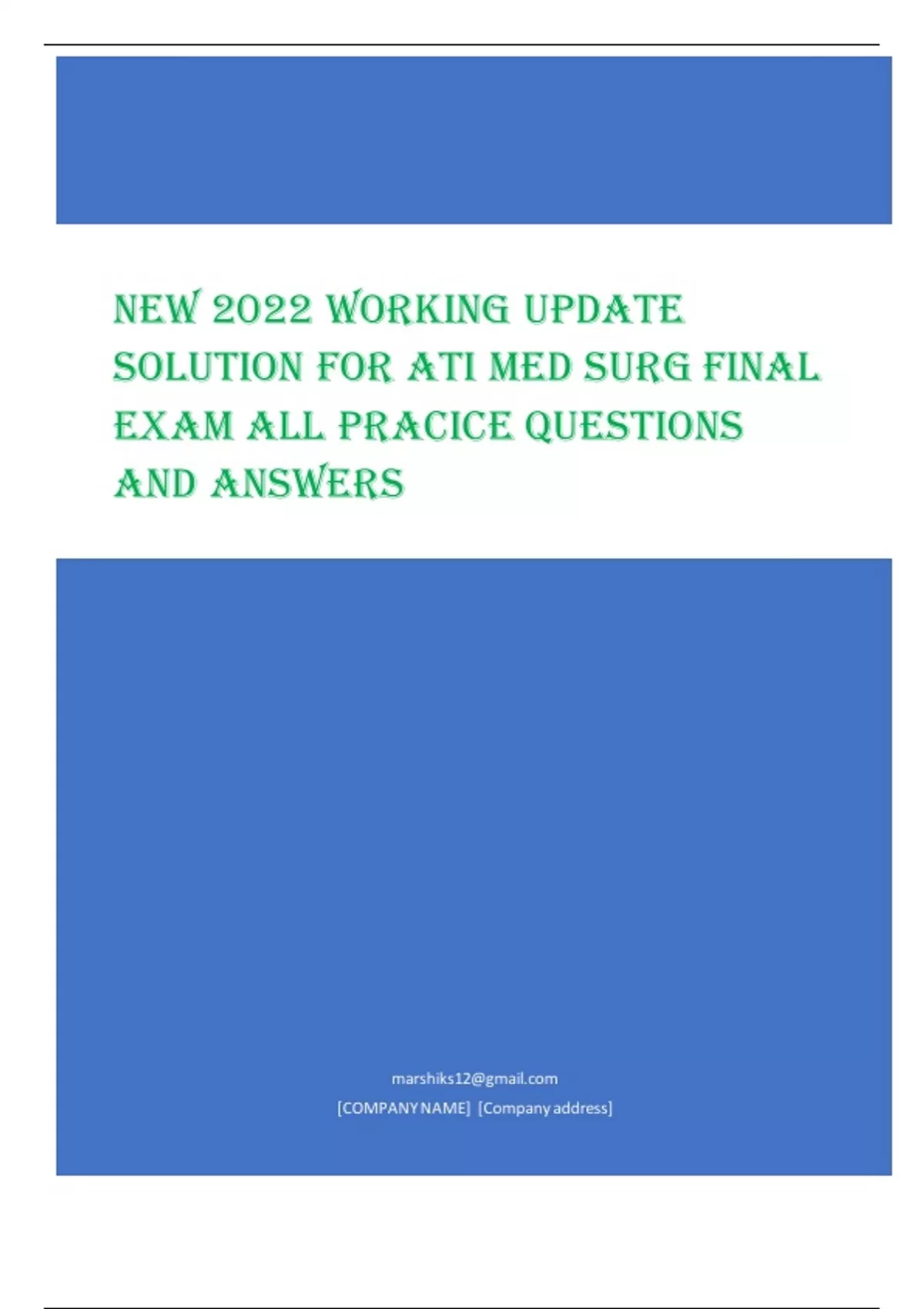 NEW 2022 WORKING UPDATE SOLUTION FOR ATI MED SURG FINAL EXAM ALL PRACICE QUESTIONS AND ANSWERS