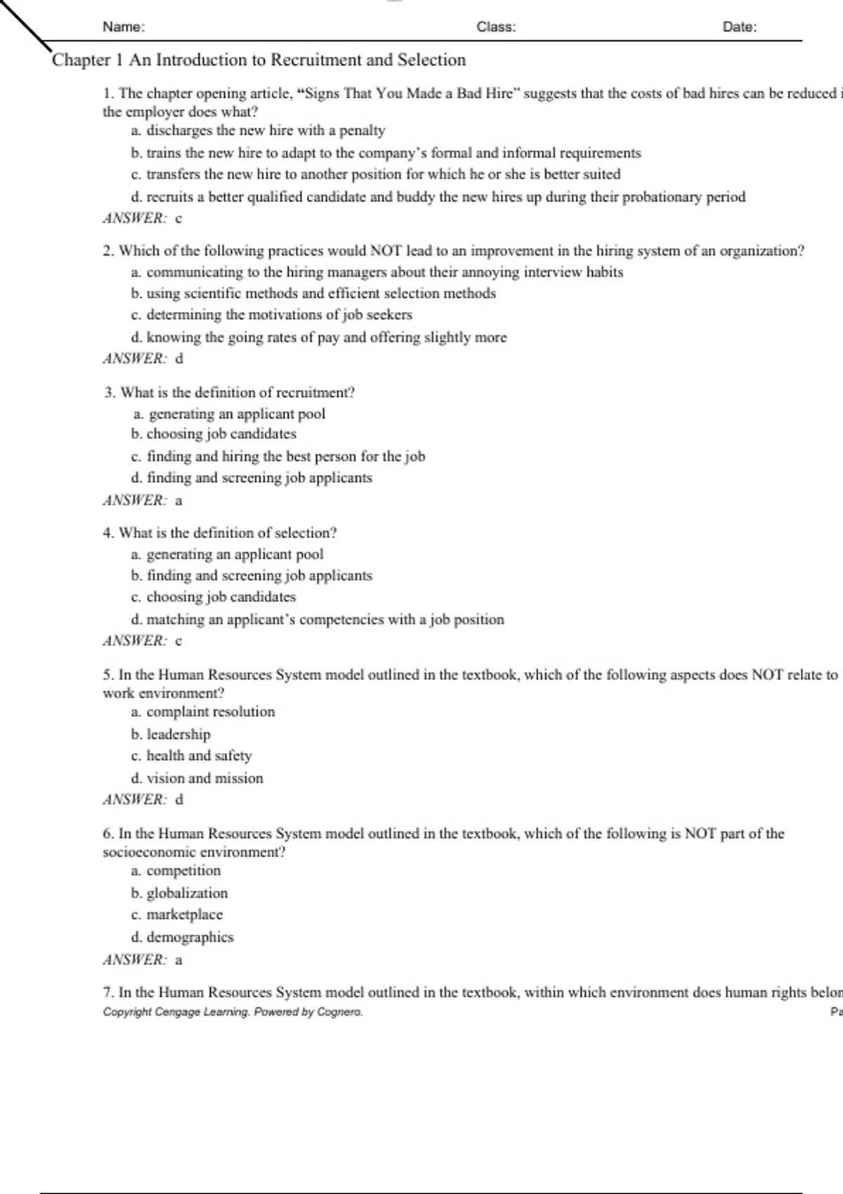 1. The chapter opening article, “Signs That You Made a Bad Hire” suggests that the costs of bad hires can be reduced i