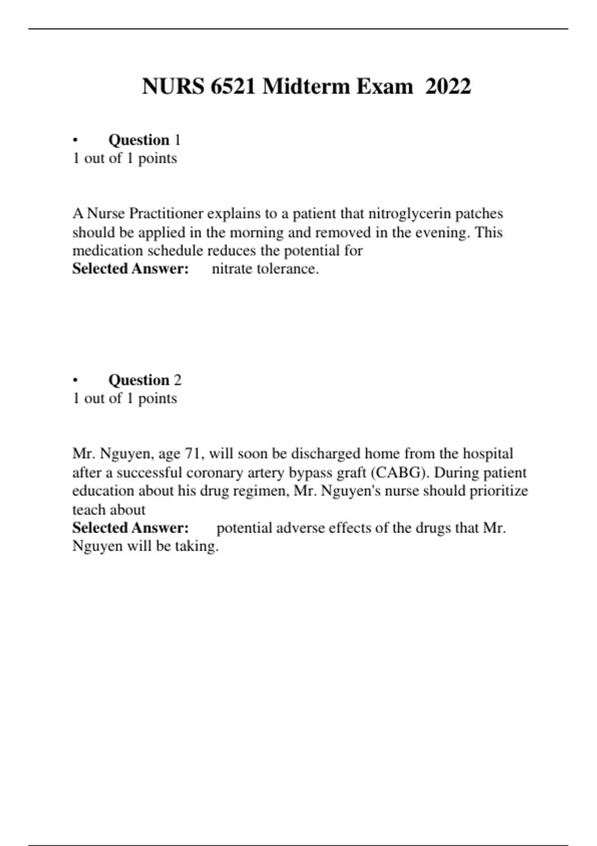 NURS 6521 Midterm Exam 2022 NURS 6521 Midterm Exam 2022 NURS 6521 Midterm Exam 2022